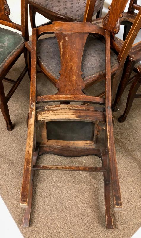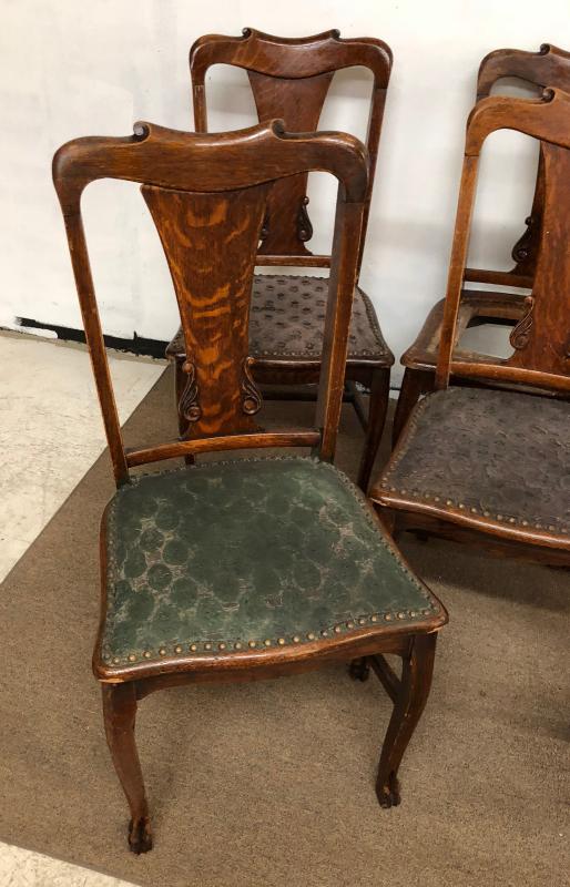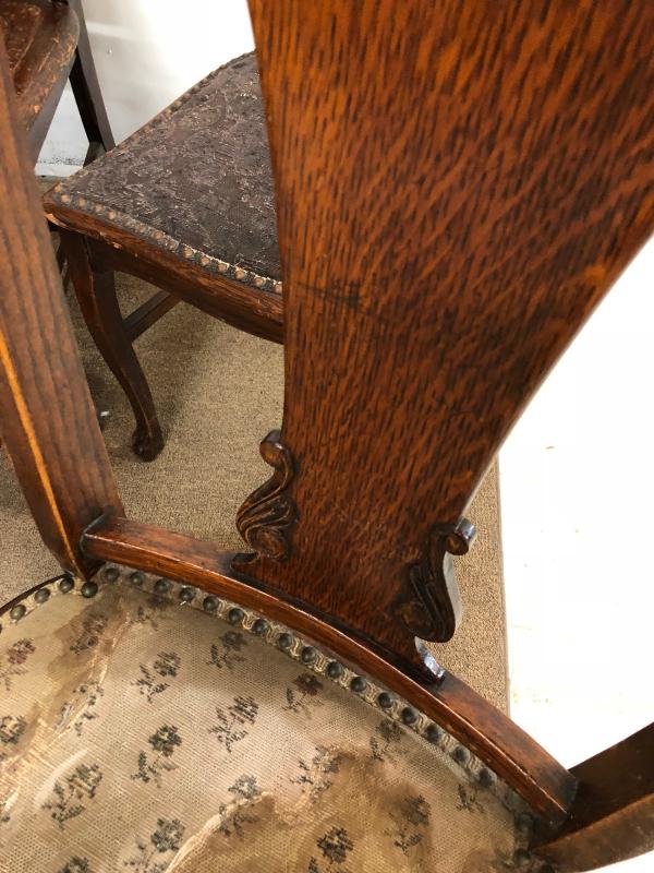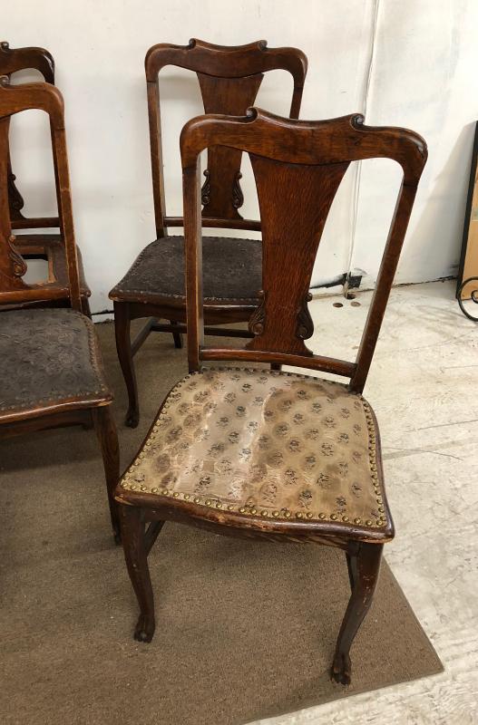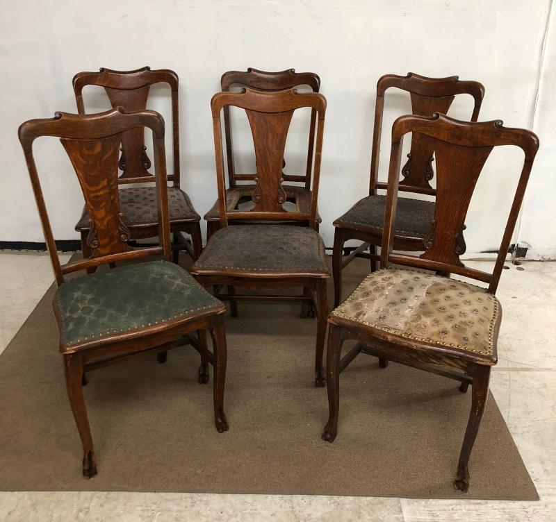 6 GOLDEN OAK T-BACK CLAWFOOT CHAIRS as is