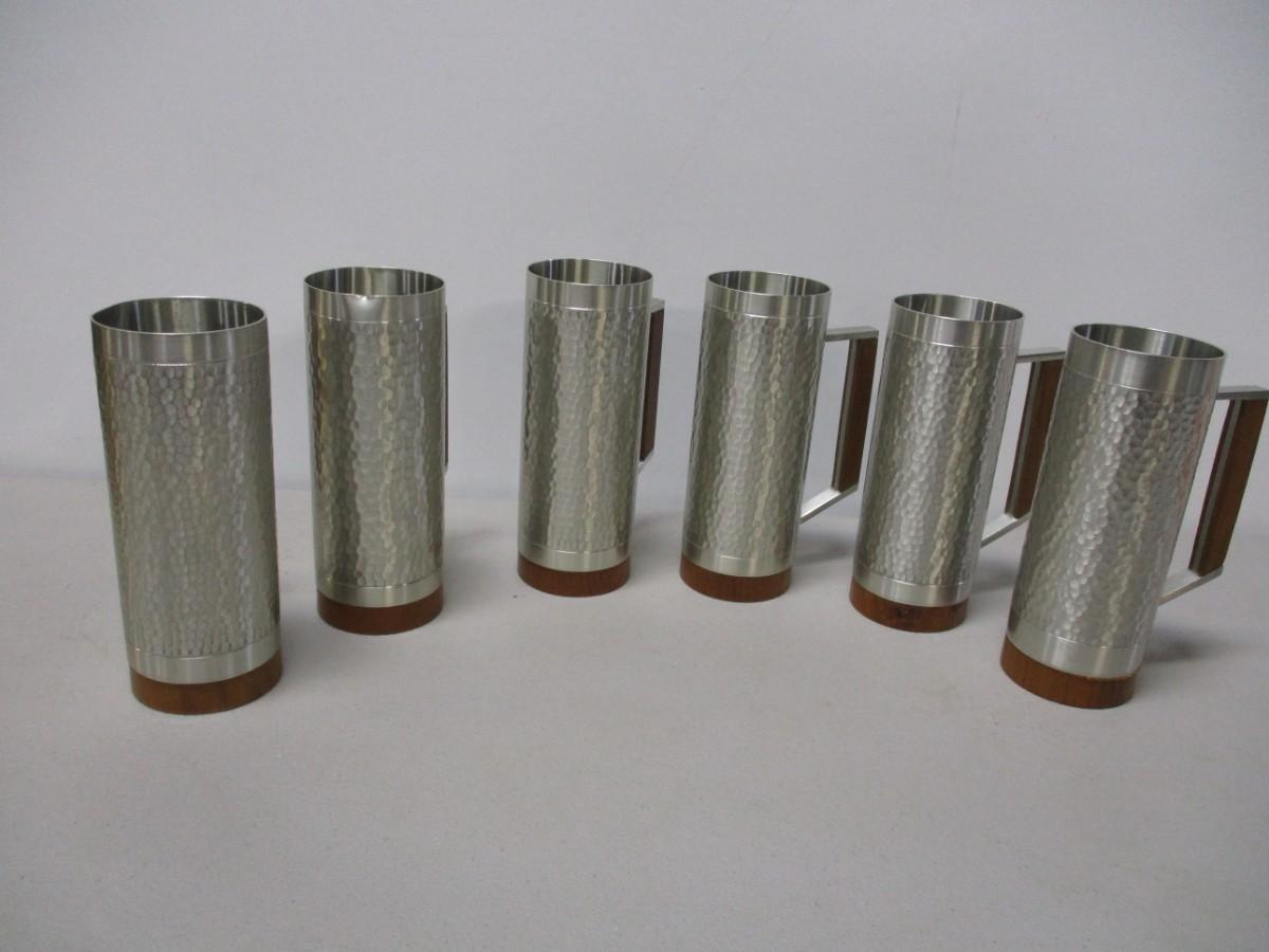 6 Hammered Pewter Teak Tankard Mug Royal Selangor Stein