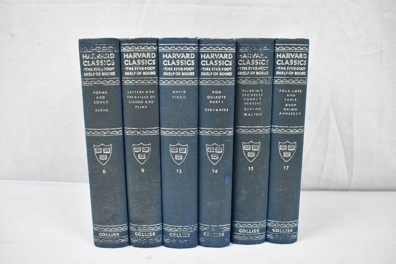 6 Hardcover Books (Dark Blue) Harvard Classics The Five Foot Shelf of Books, volumes 6, 9, 13, 14, 15, 17. Antique 1909