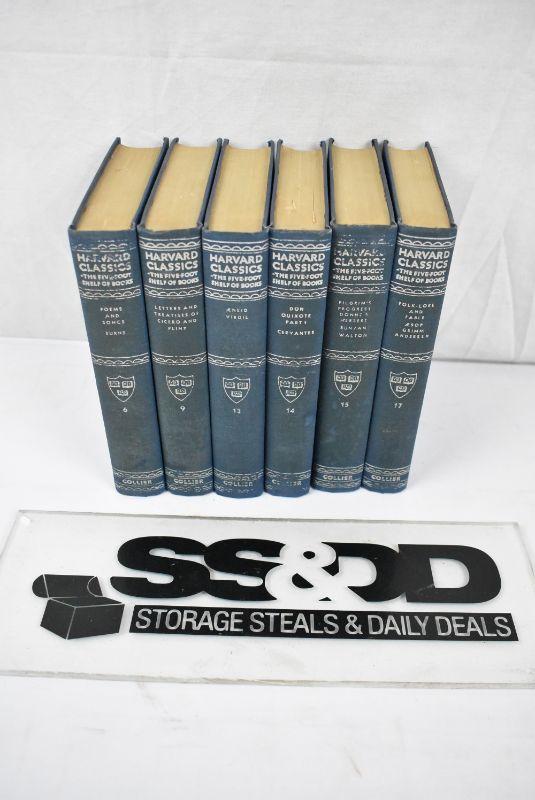 6 Hardcover Books (Dark Blue) Harvard Classics, 5' Shelf of Books. Antique 1909