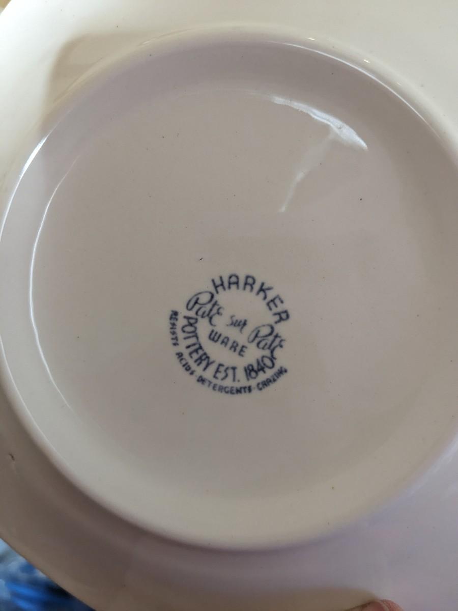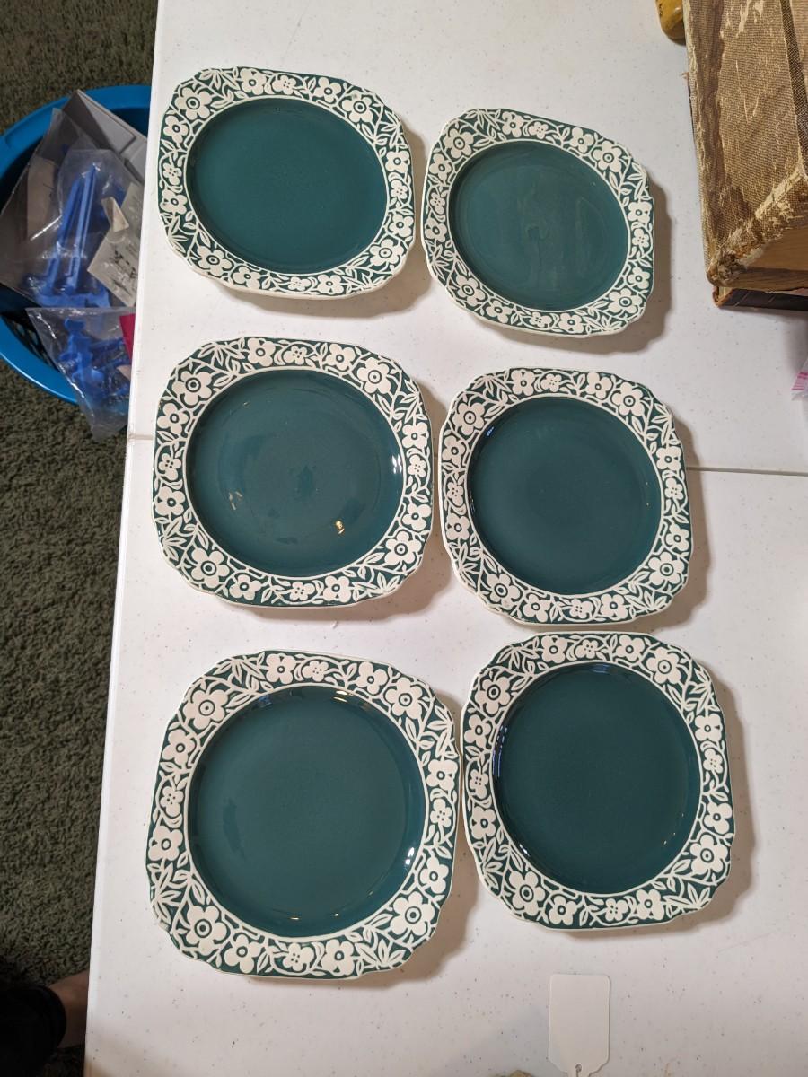 6 Harker Pottery Pate Sur Pate Bread Dessert Plates 6.5” Green White Floral Band