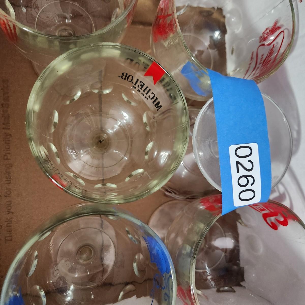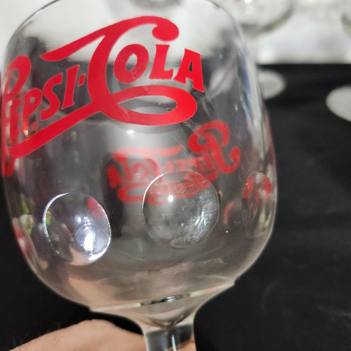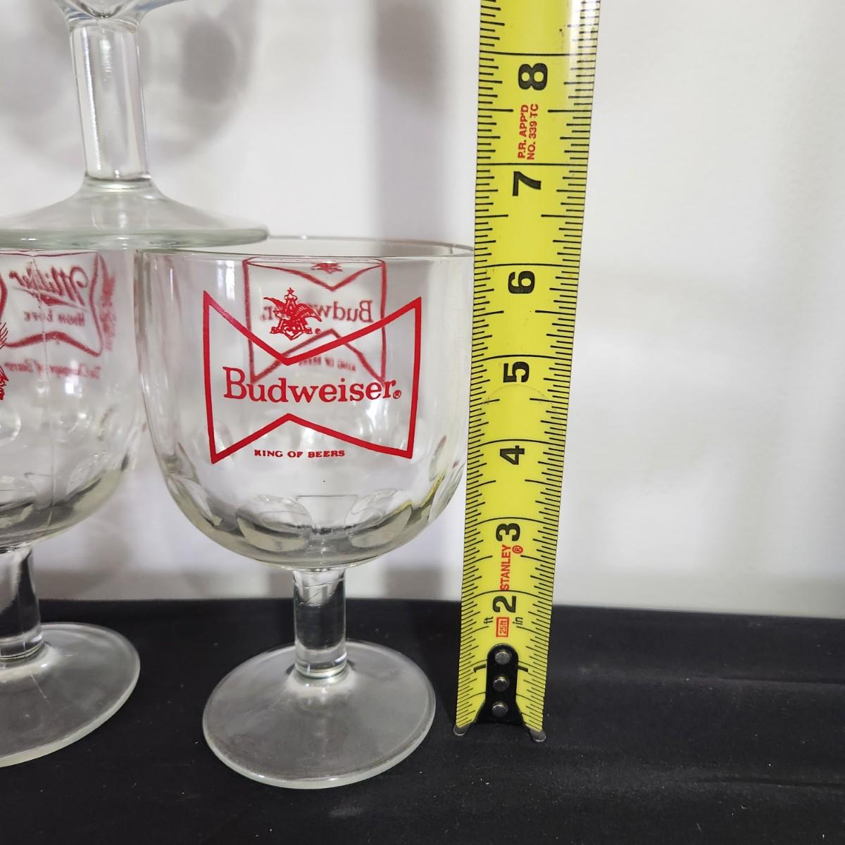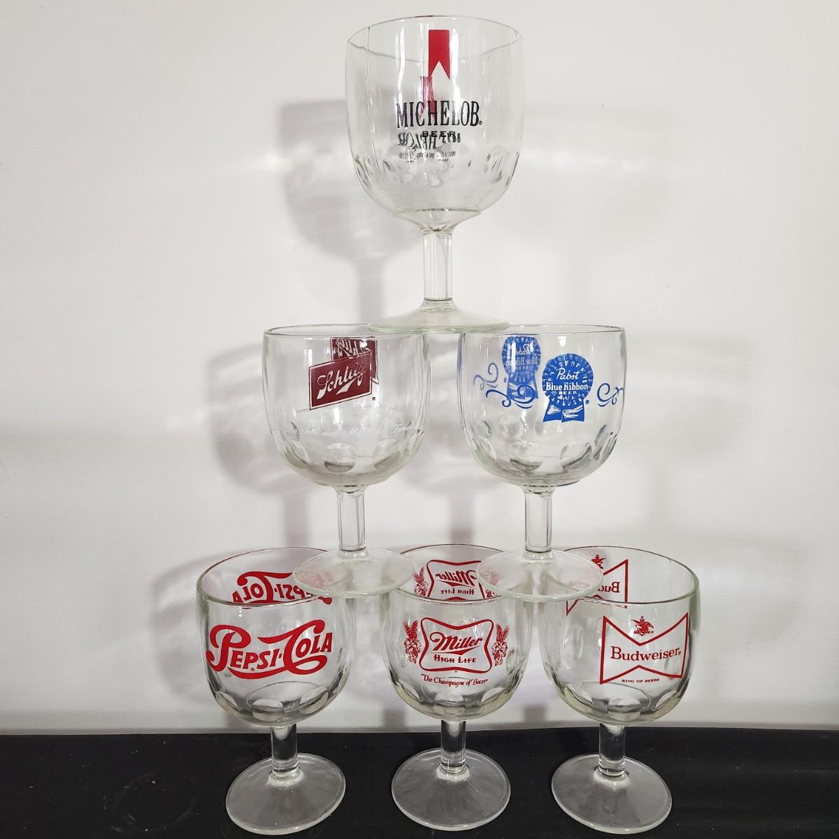 6 Heavy Glass Thumb Print Goblets Barware Schlitz Miller High Life Budweiser Pabst Blue Ribbon Pepsi Cola