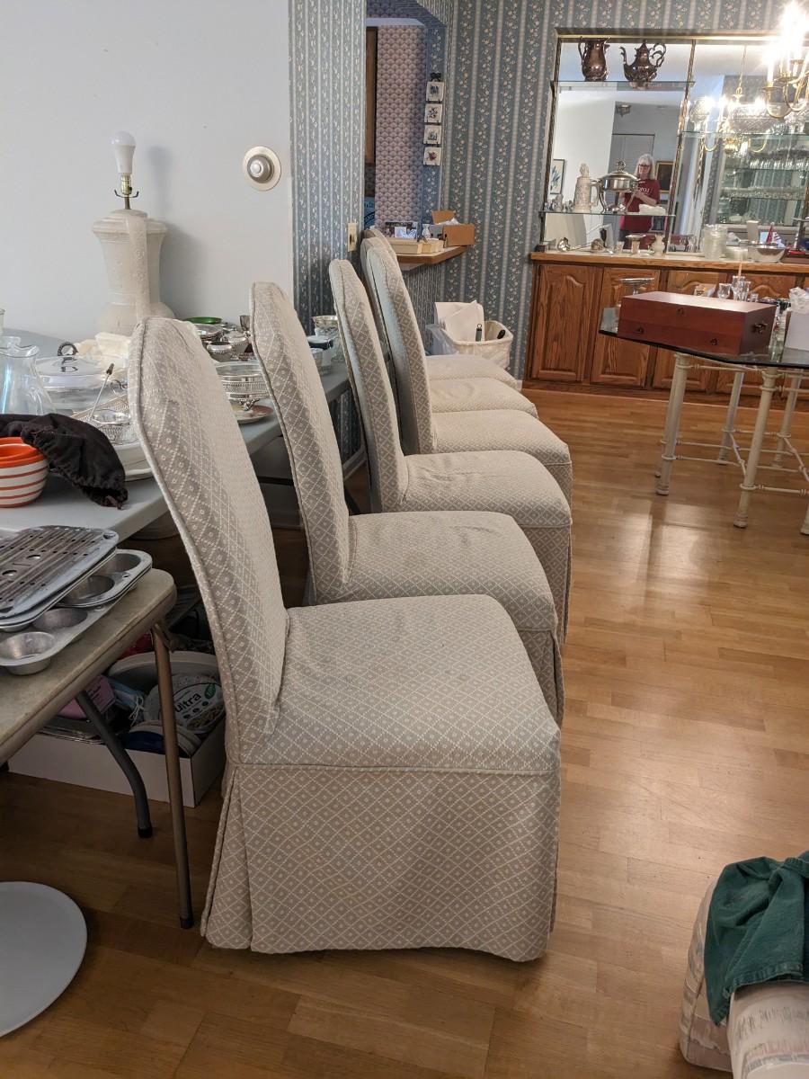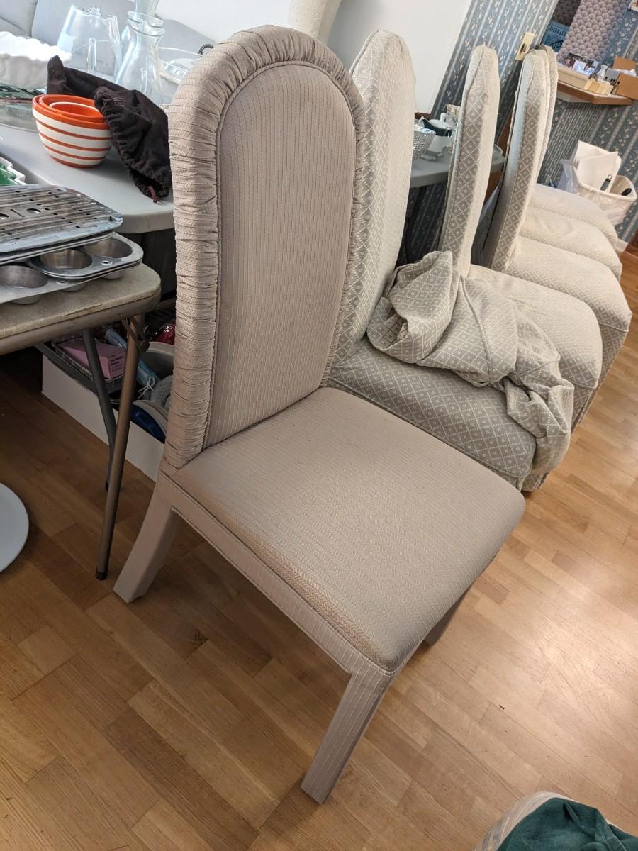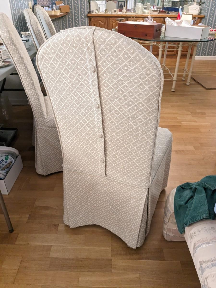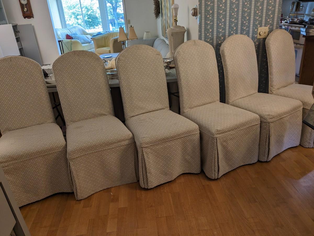 6 High Back Dining Chairs (Rubins) Newly Professionally Covered