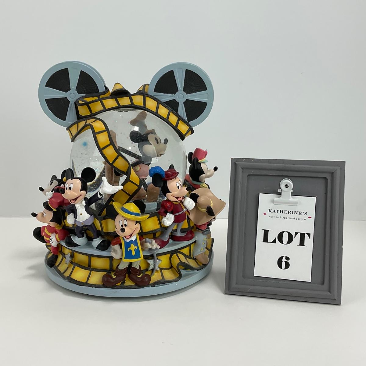 One Disney Mickey Mouse Through the Years reel to reel water snow globe with music in good shape with no box 8 inches tall by 8 inches wide. Please see photos for details and condition. Any condition statement is given as a courtesy to a client, is an opinion, and should not be treated as a statement of fact. Reference to condition written, oral or within a condition report shall not be regarded as a full account of condition and may not include all defects, alterations, or restorations. Absence of a condition report does not imply a lot is flawless or lacking imperfections or damage. Katherine’s Auction & Appraisal Service shall have no responsibility for any error or omission. Returns shall not be accepted on the basis of condition. ::: Shipping is NOT available on this lot. If you have any questions regarding this lot please contact the auctioneer either via this website, by direct email or by phone. PICK UP TIMES and other important information can be found in the TERMS and DESCRIPTION of the auction. Please take a look for pertinent information. Thanks!