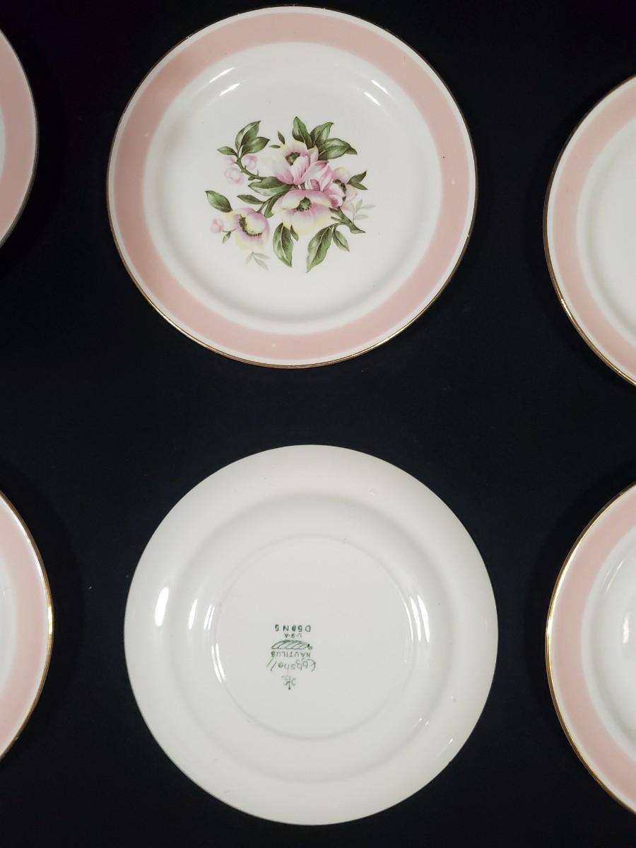 6 Homer Laughlin Eggshell Nautilus Pink Band 6'' Bread & Butter Plates - Pattern 1951