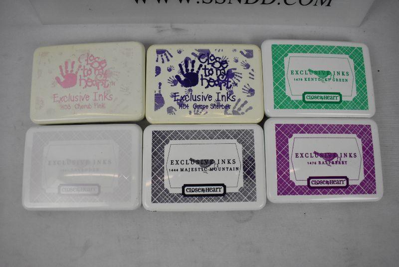 6 Ink Pads by Close to my Heart: Cherub Pink, Grape Sherbet, Kentucky Green, Lavender, Majestic Mountain, & Raspberry. All work