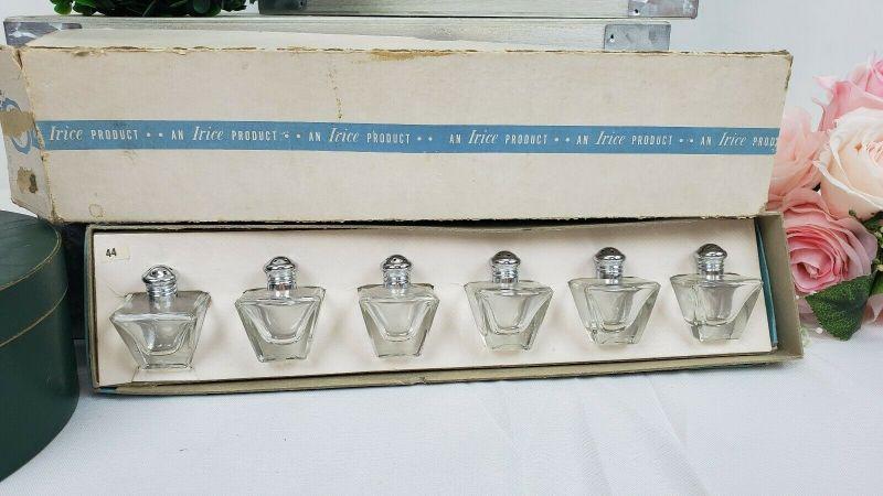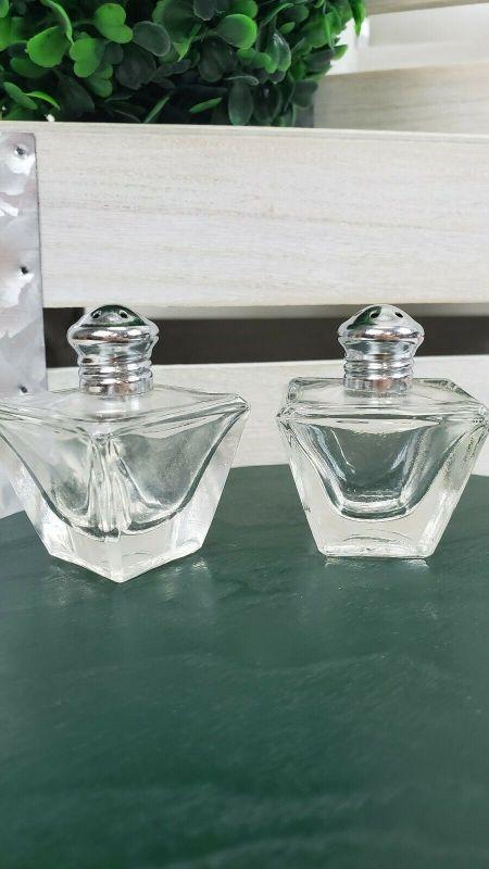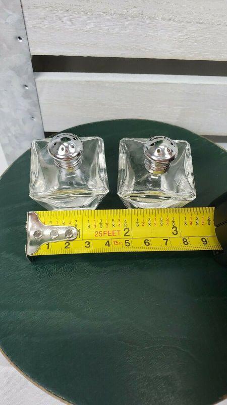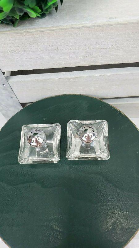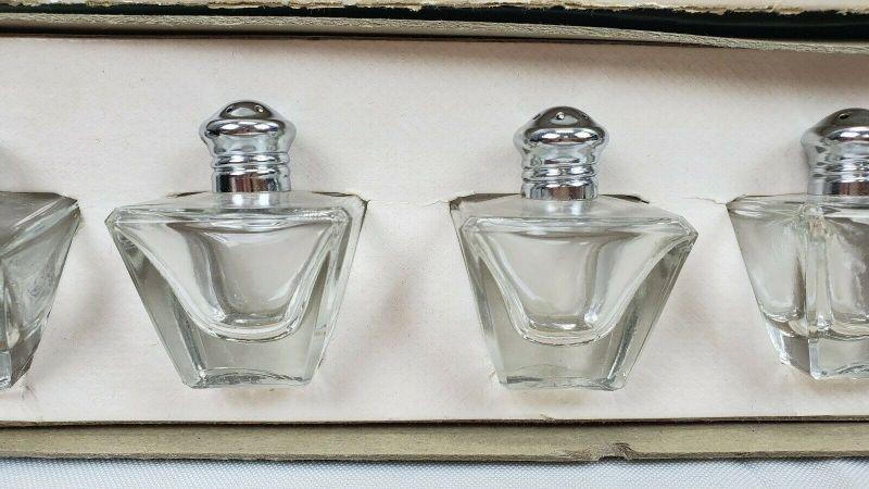 6 Irice Irving Salt & Pepper Shakers, Vintage, Glass Chrome Square, w/Box Mini