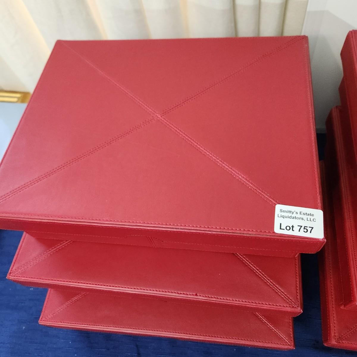 6 Leather covered Lined Letter size Storage Boxes 12x10x3