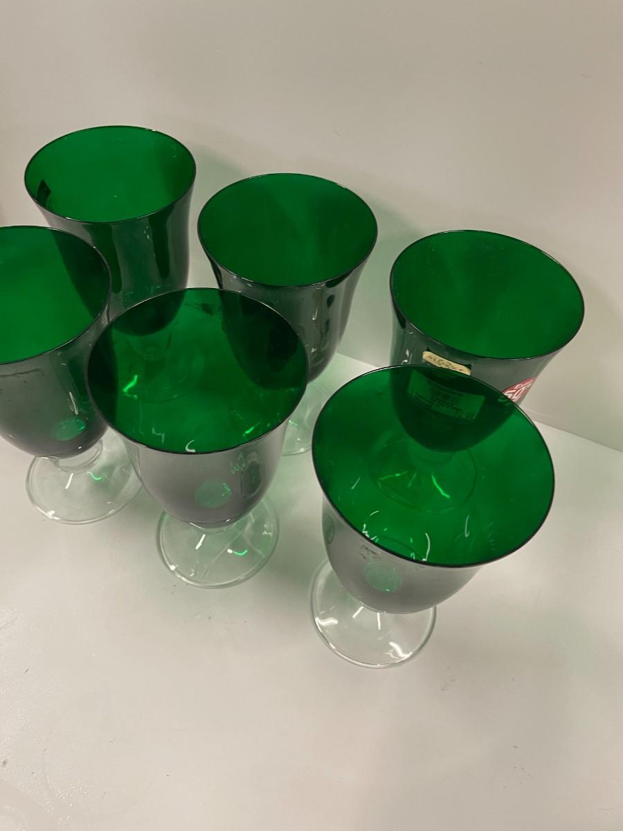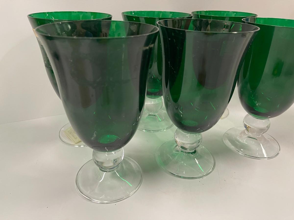 <p>Set of 6 Lenox Holiday Gems emerald green all purpose goblets. Approximately 6 1/2" high x 4" wide at the mouth. Each is in excellent, new condition. </p> # 1310