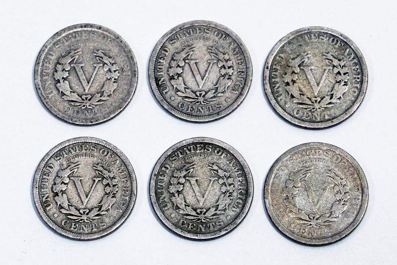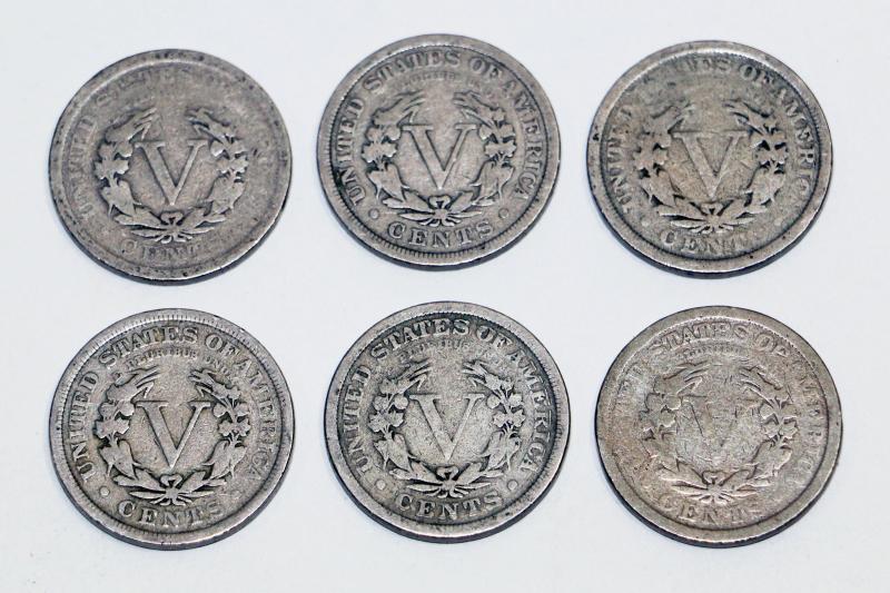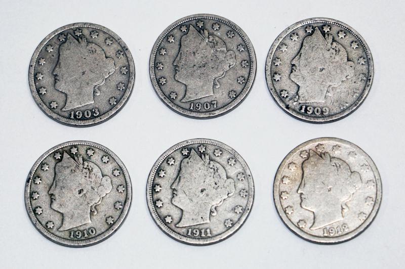 6 Liberty Head V-Nickles Coin Set - 1903-1912 - Rare American Coins Lot #501-08