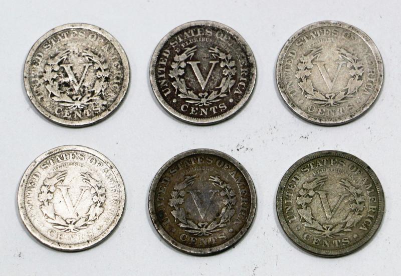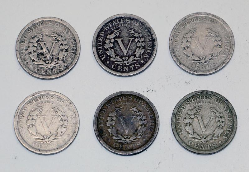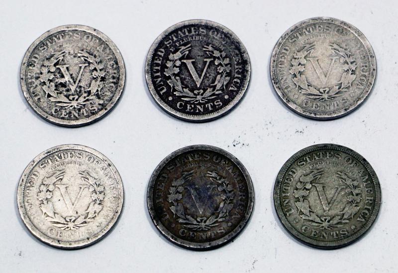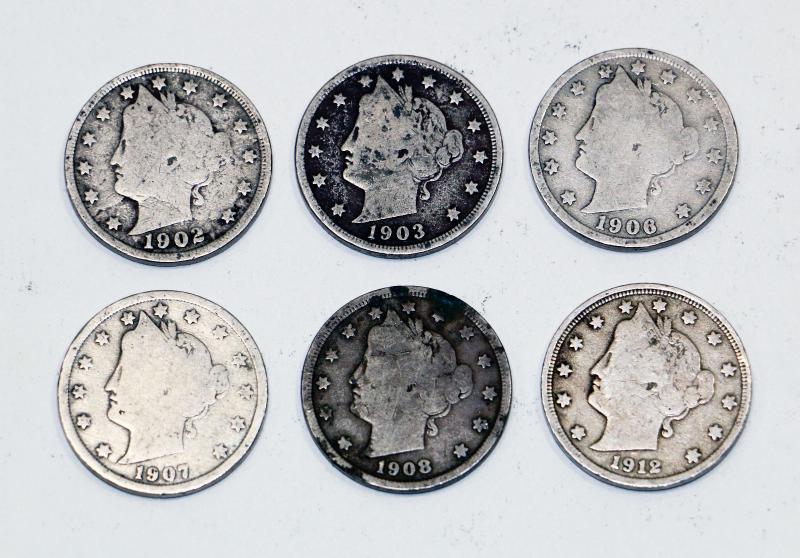 6 Liberty Head V-Nickles Coin Set - 1902-1912 - Rare American Coins Lot #501-10