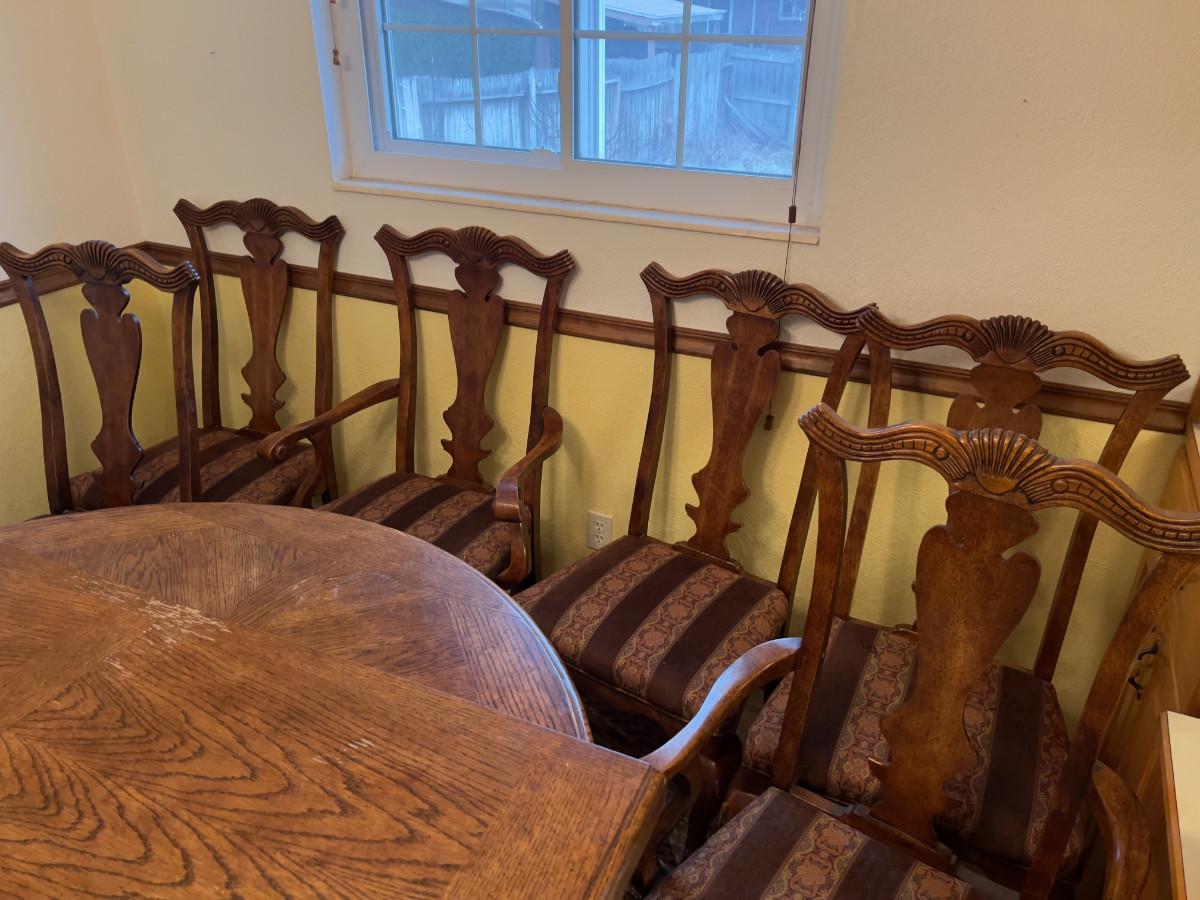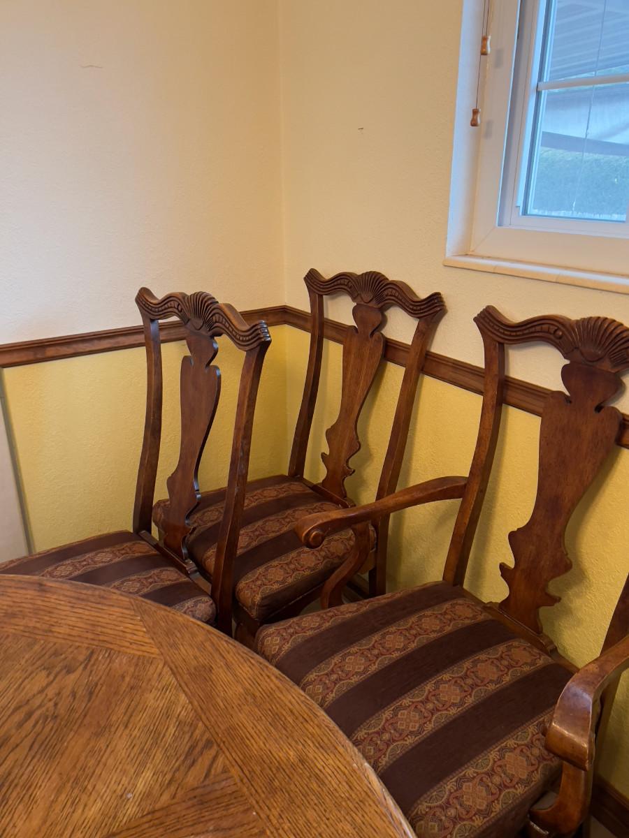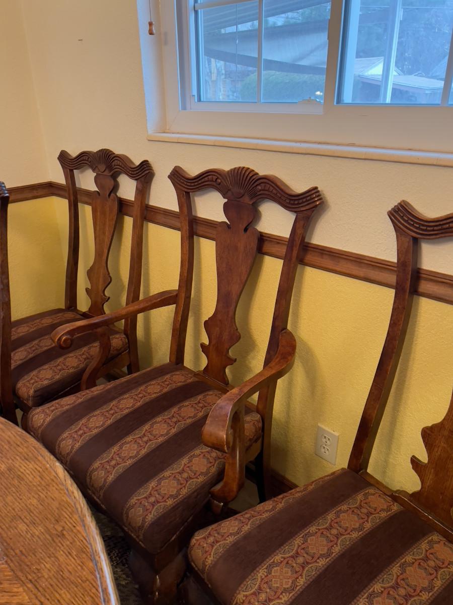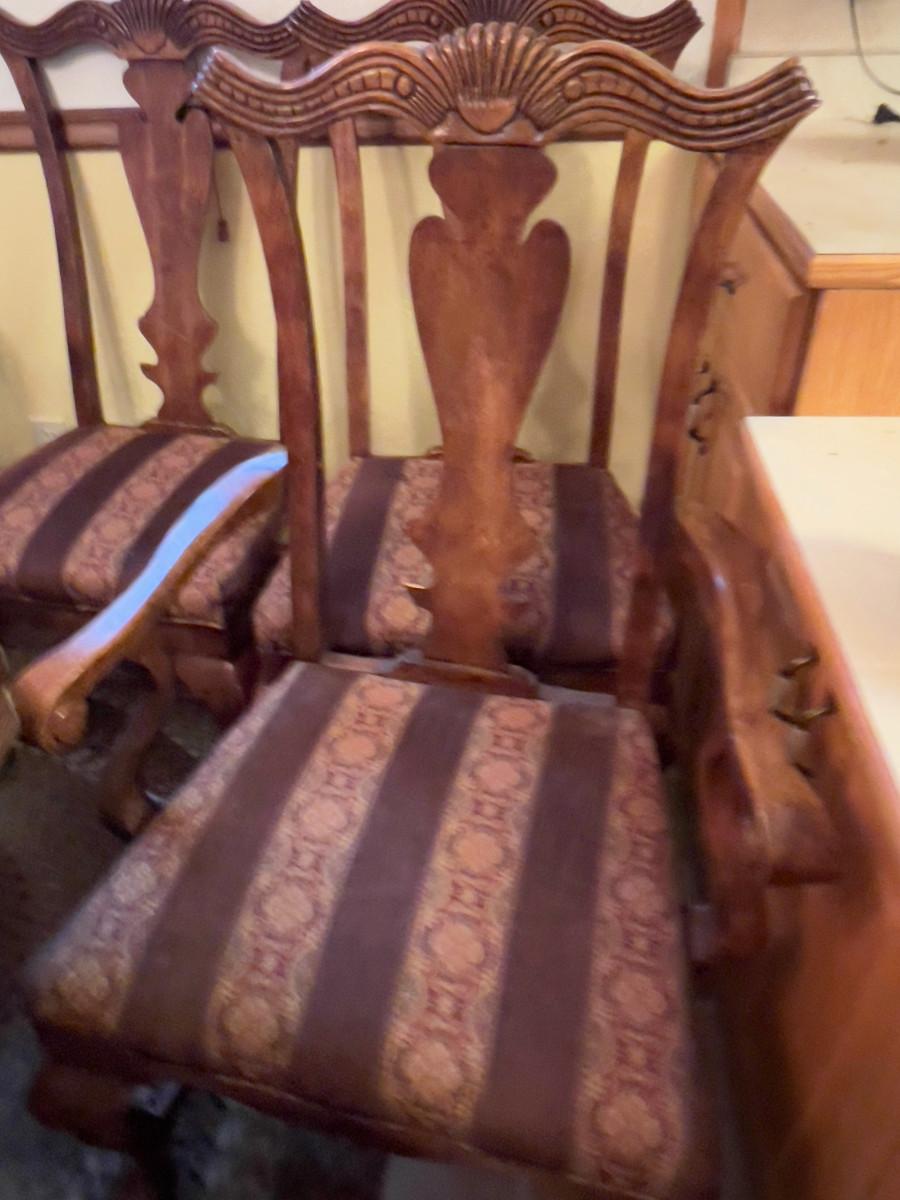 6 Matching Fruitwood Chairs w/ Upholstered Seats