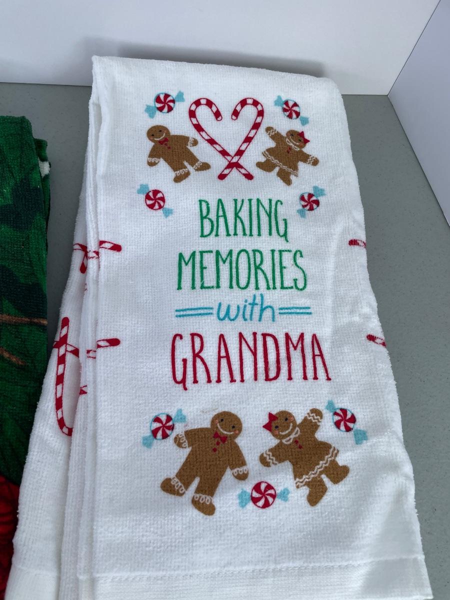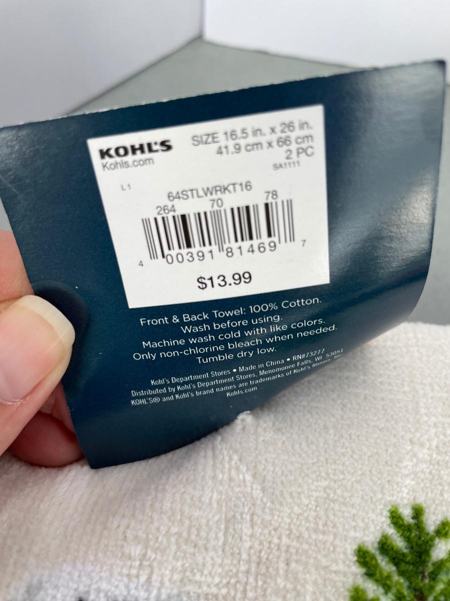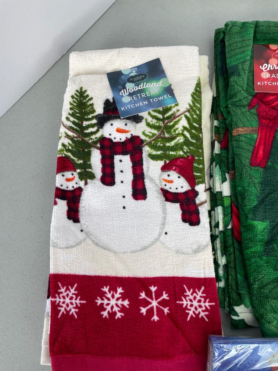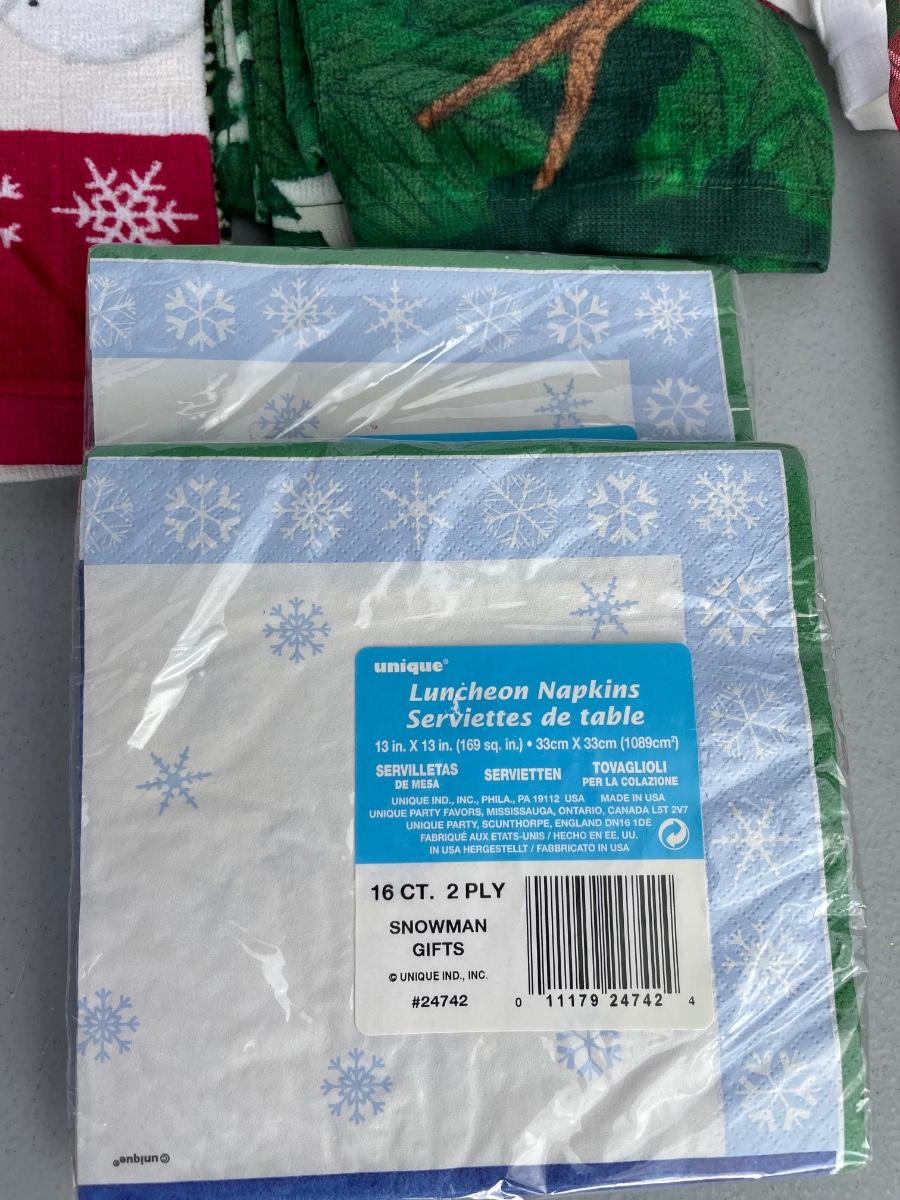 Towels are from Kohl’s. Three sets of 2 towels. New napkins, oven mit.