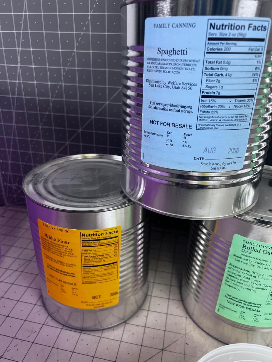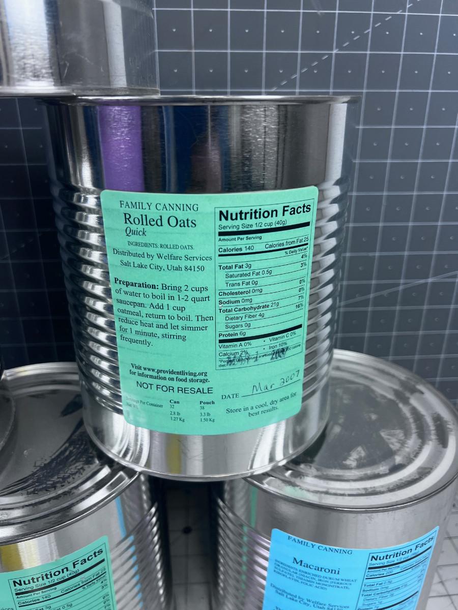 (6) No. 10 Can FOOD STORAGE Oats, Bean, Spaghetti , Flour