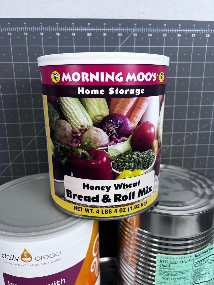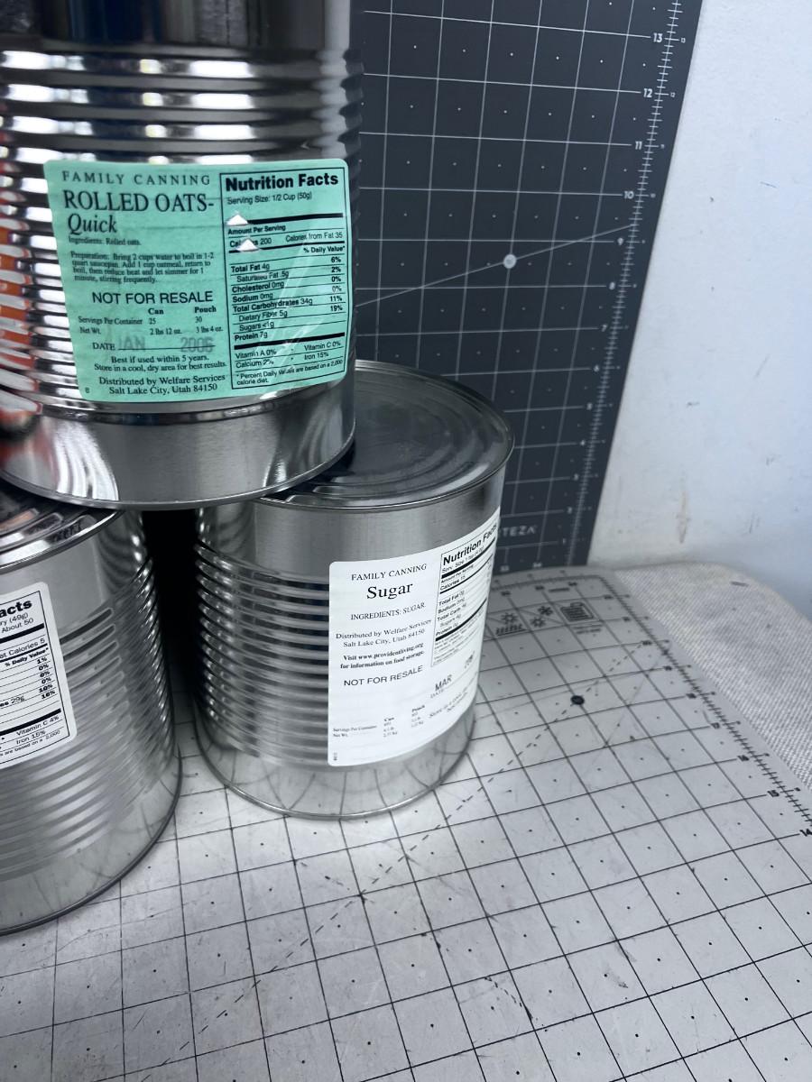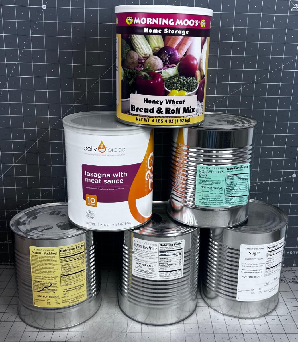 (6) No. 10 Can FOOD STORAGE Sugar, Bean, Oats, Lasagna, Bread Mix.