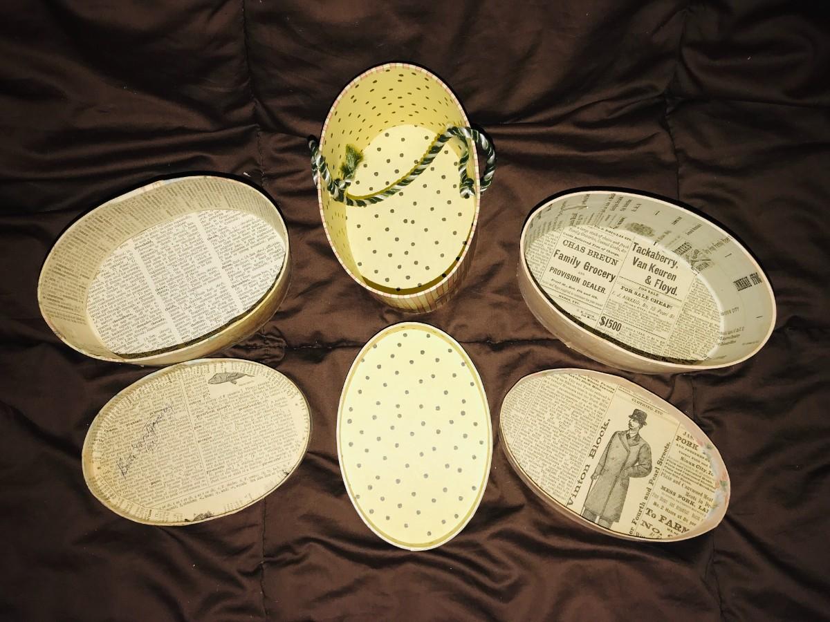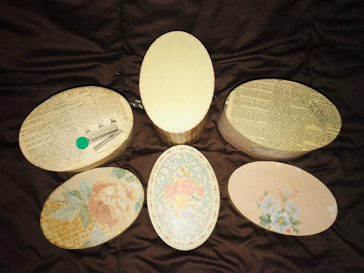 6 Oval Decorative Storage Boxes / Embellishment /Button Holders