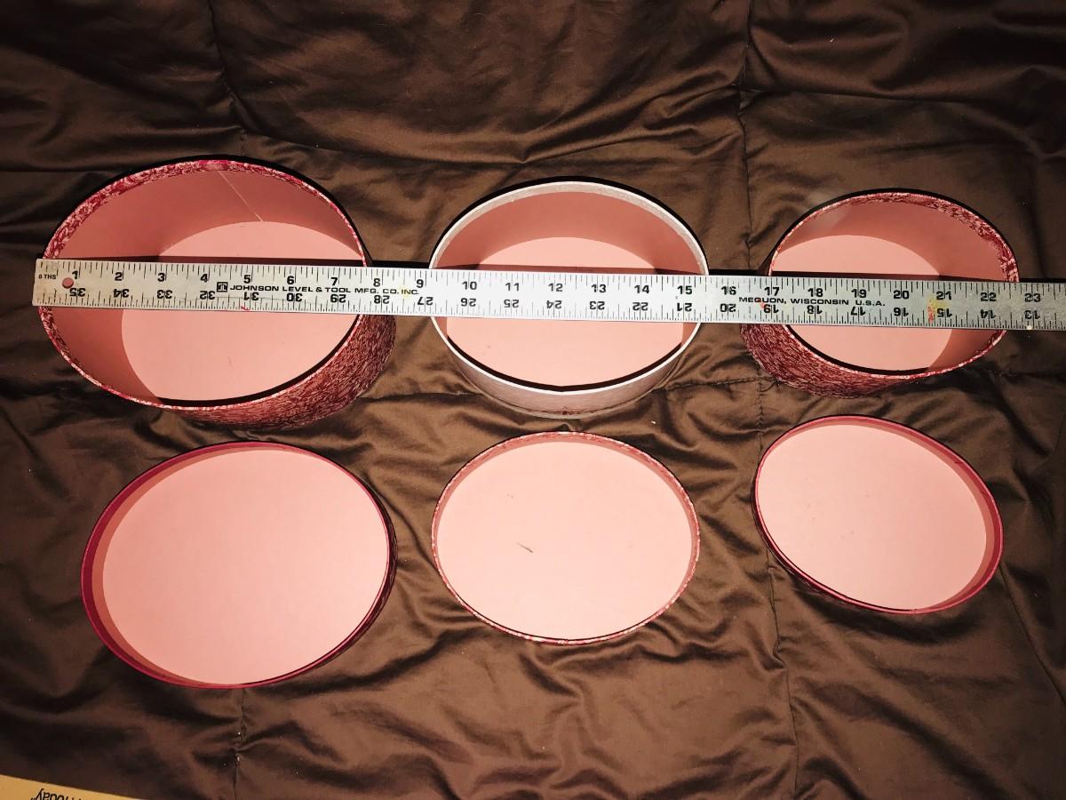 2 Sets of 3 matching boxes .