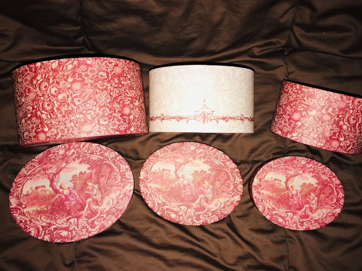 Reddish / toile ones are gift shop bought.