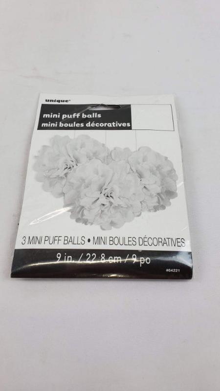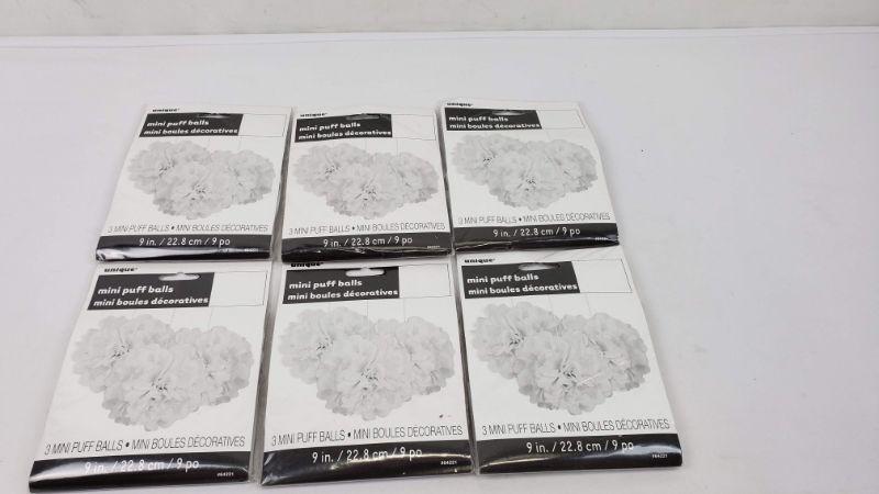 6 Packages- 3 Mini Puffs Each (9in), White, Qty. 6 pks-18 Puffs - New