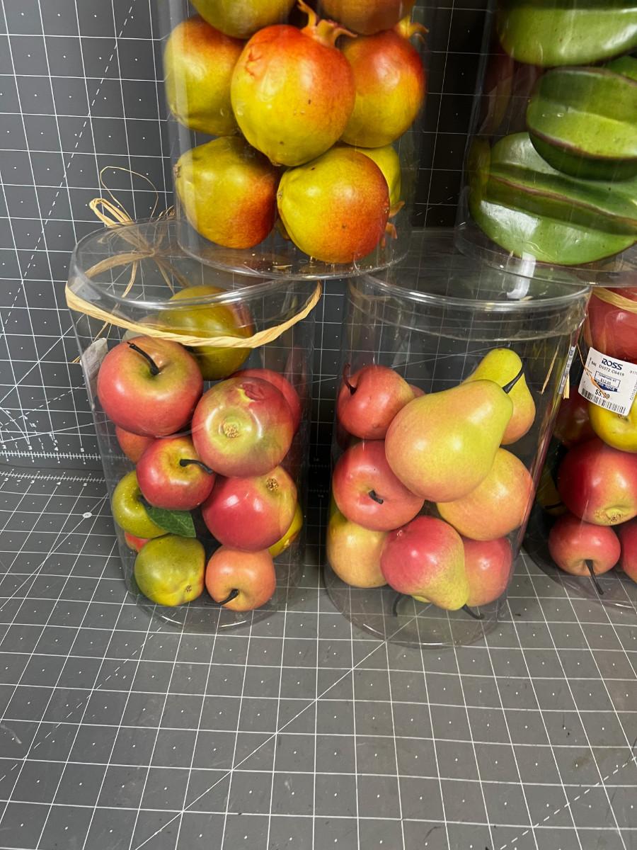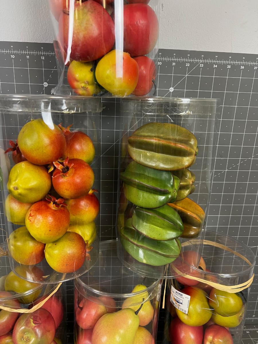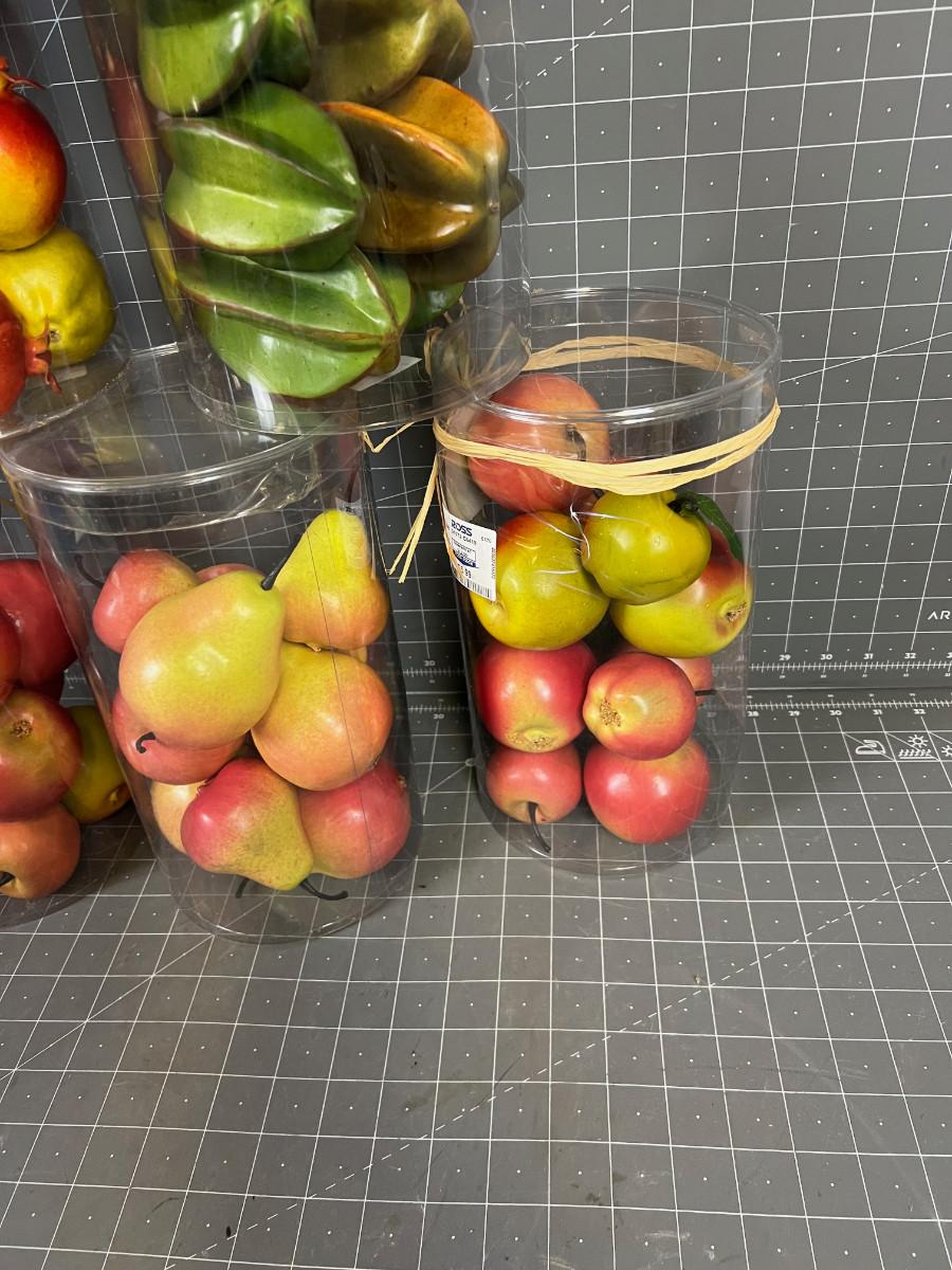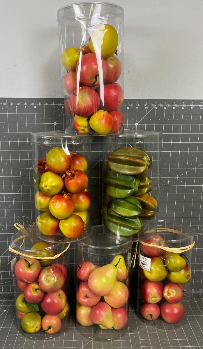 6 Packages of Faux Fruit; Star Fruit, Apples and Pears