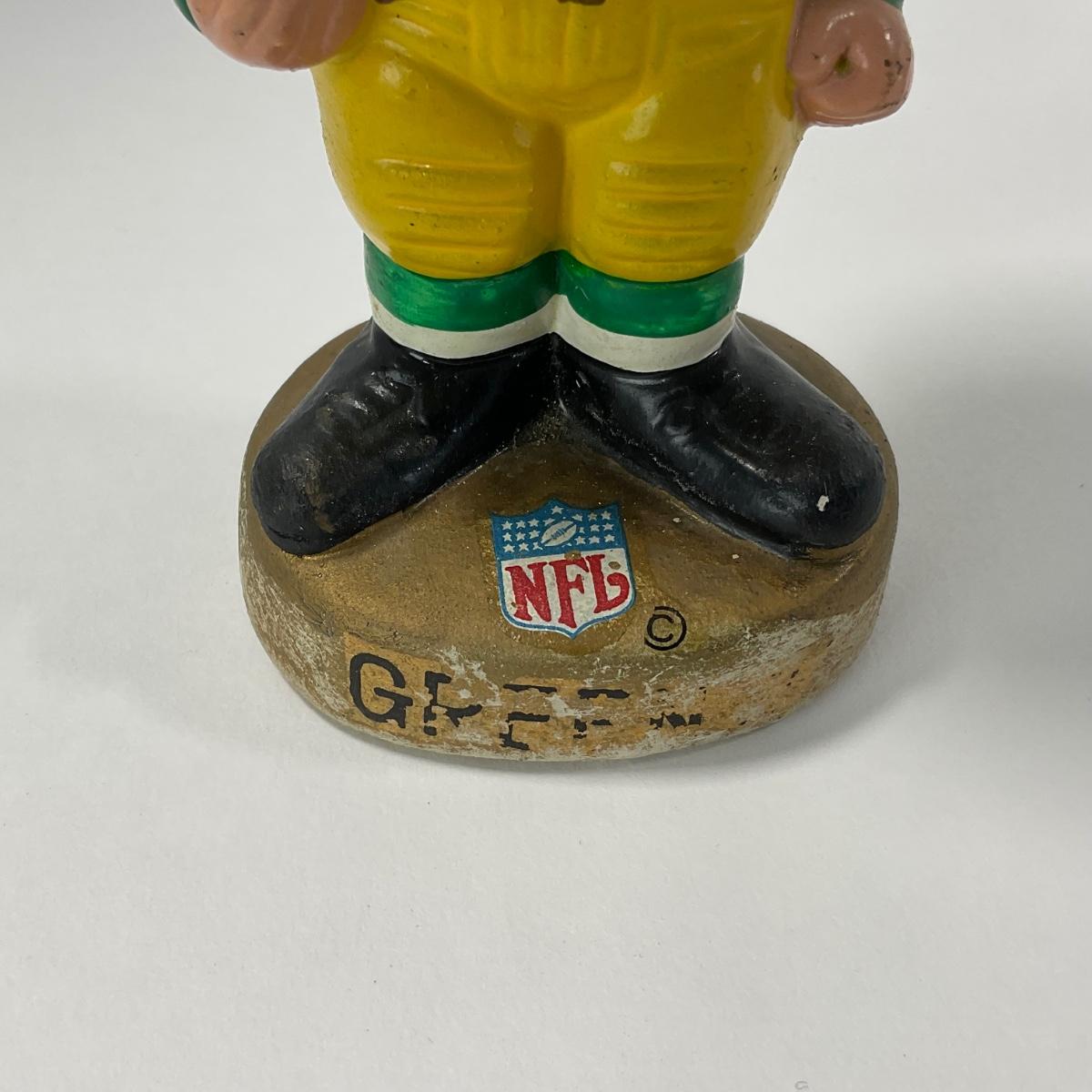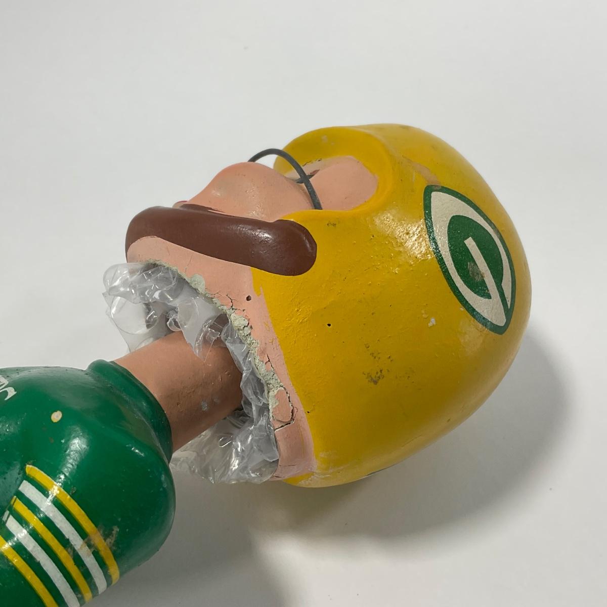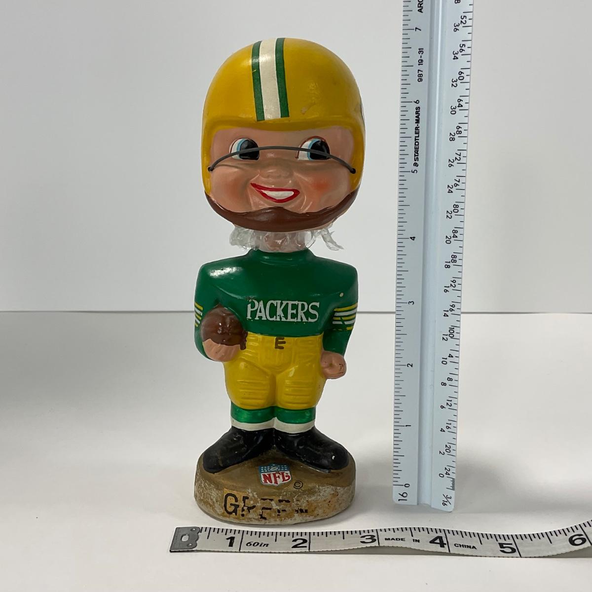 One vintage 1960’s Green Bay Packers Nodder. Please see photos for details and condition. ::: Shipping is available on this lot. If you require shipping you must let us know at the close of the auction. We will coordinate with you after the item has been won. Shipping fees will include insurance up to or exceeding the value of all items being mailed. If you have any questions regarding this lot please contact the auctioneer either via this website, by direct email or by phone. PICK UP TIMES and other important information can be found in the TERMS and DESCRIPTION of the auction. Please take a look for pertinent information. Thanks!