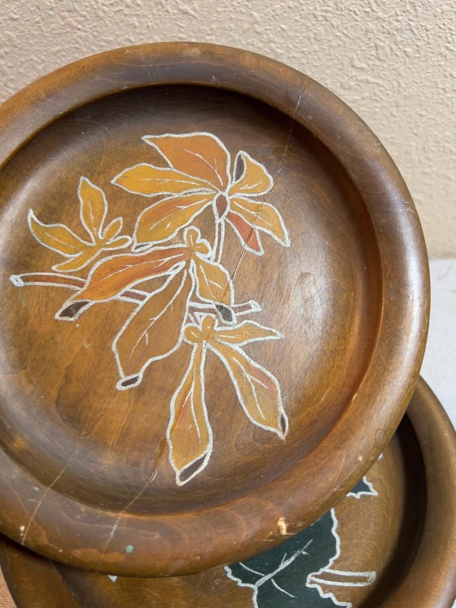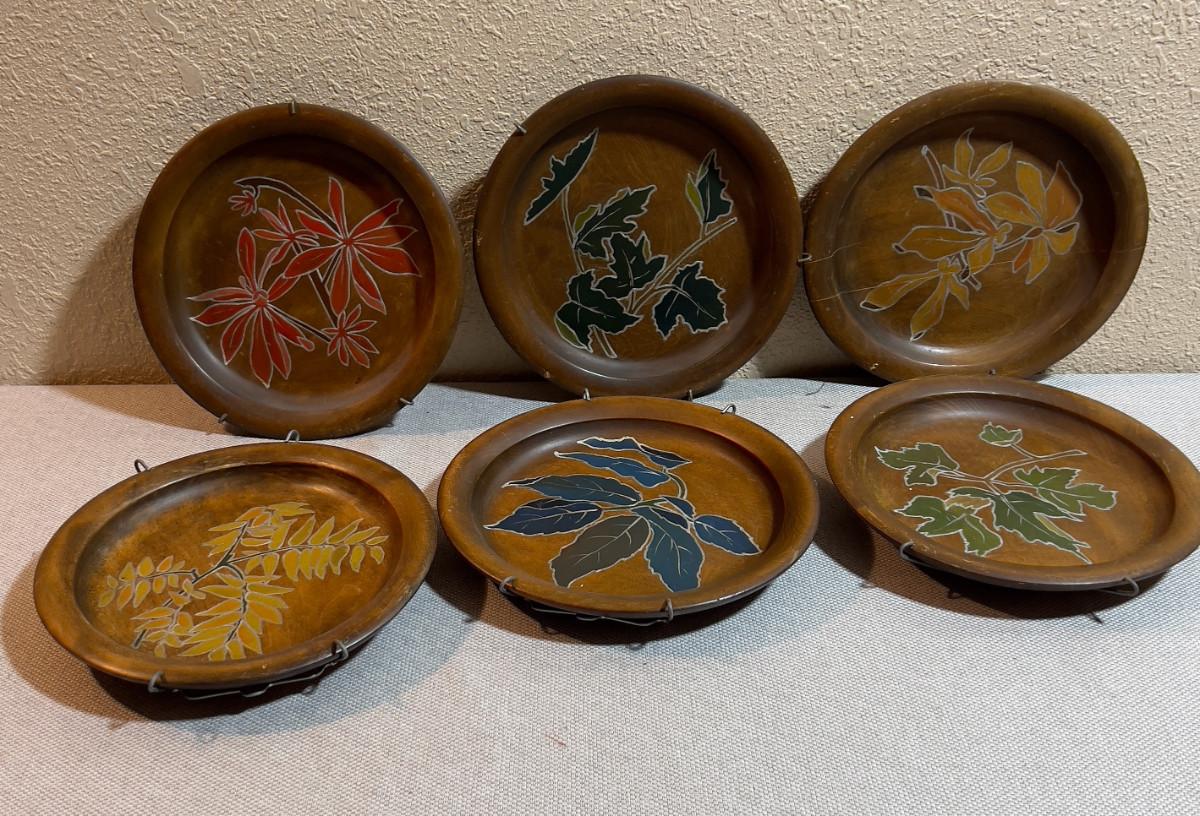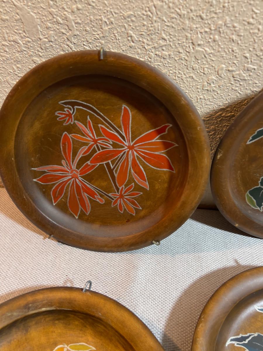 Hang up your art Plates today. Used. One has been repaired. Fun 70's throw back décor.