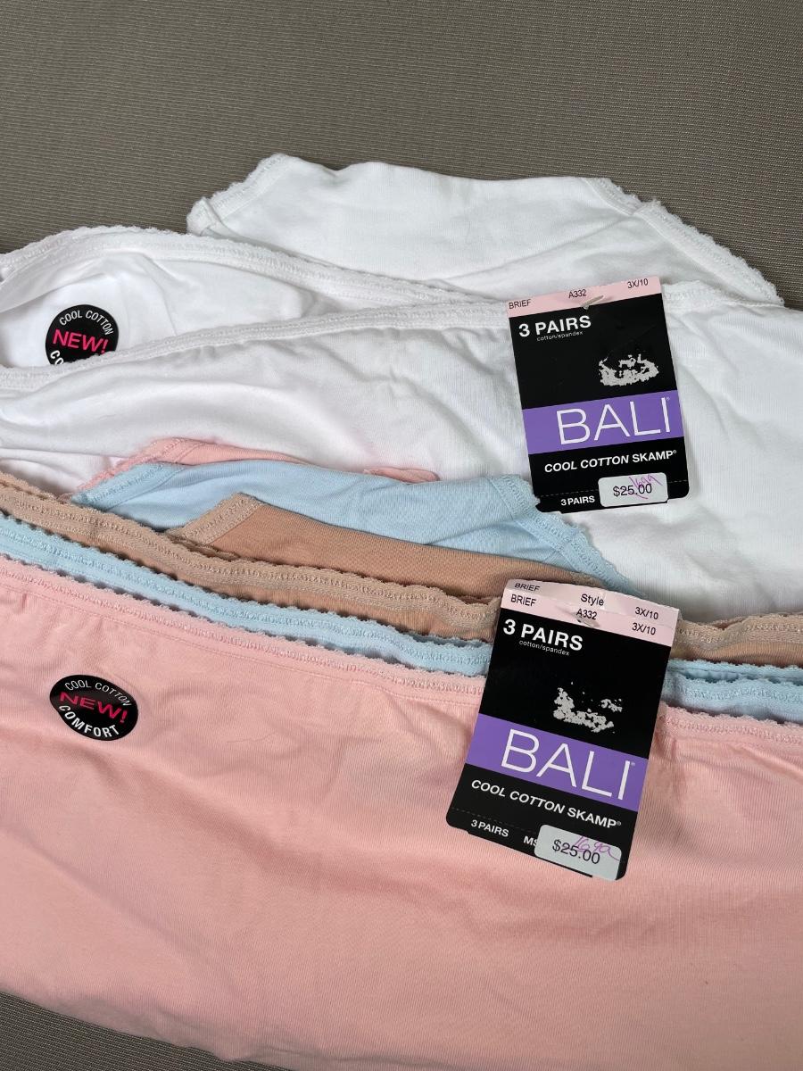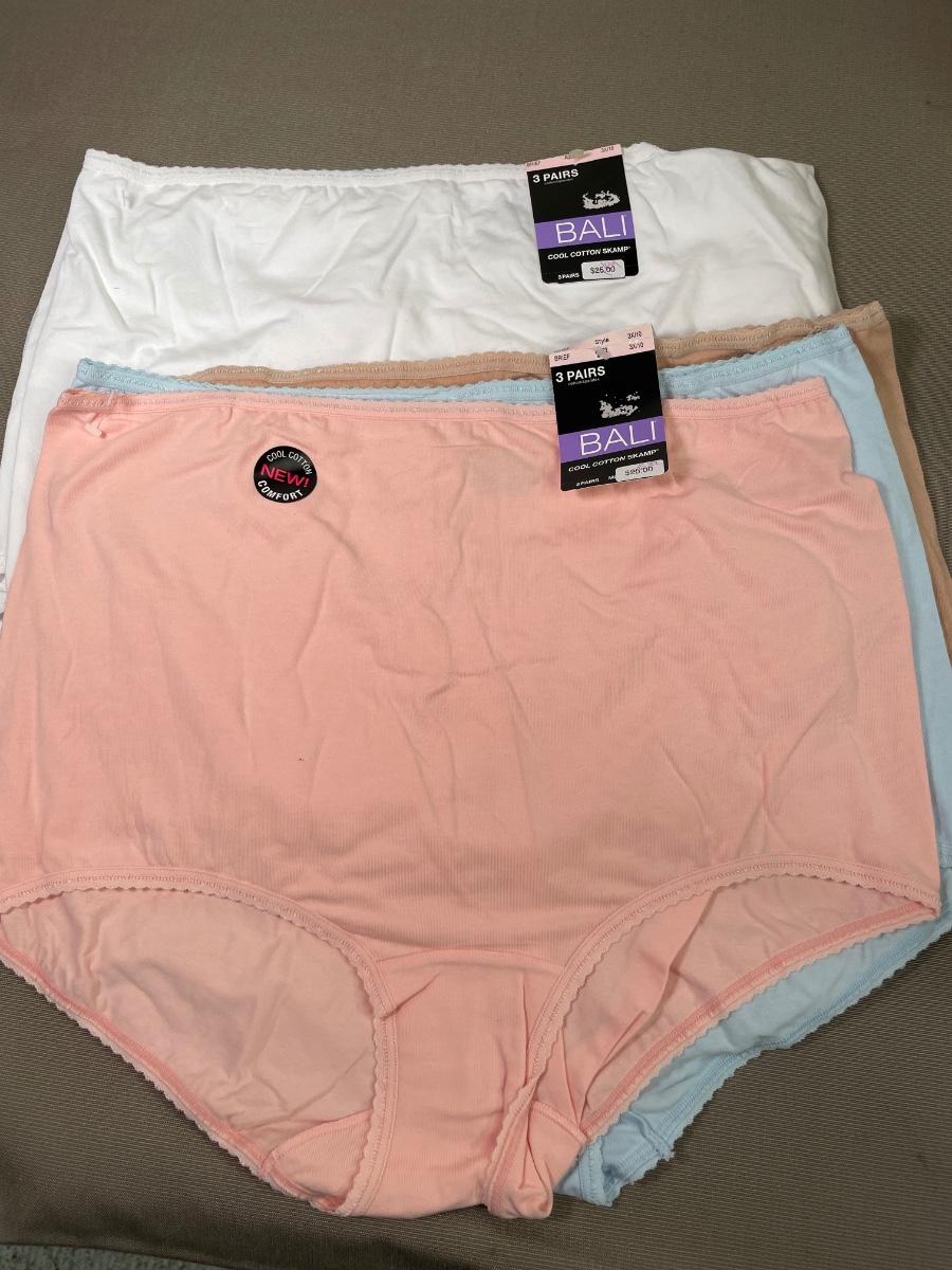 3 white, 3 colors all new with tags Bali Cool Cotton Skamp panties. Style A332
