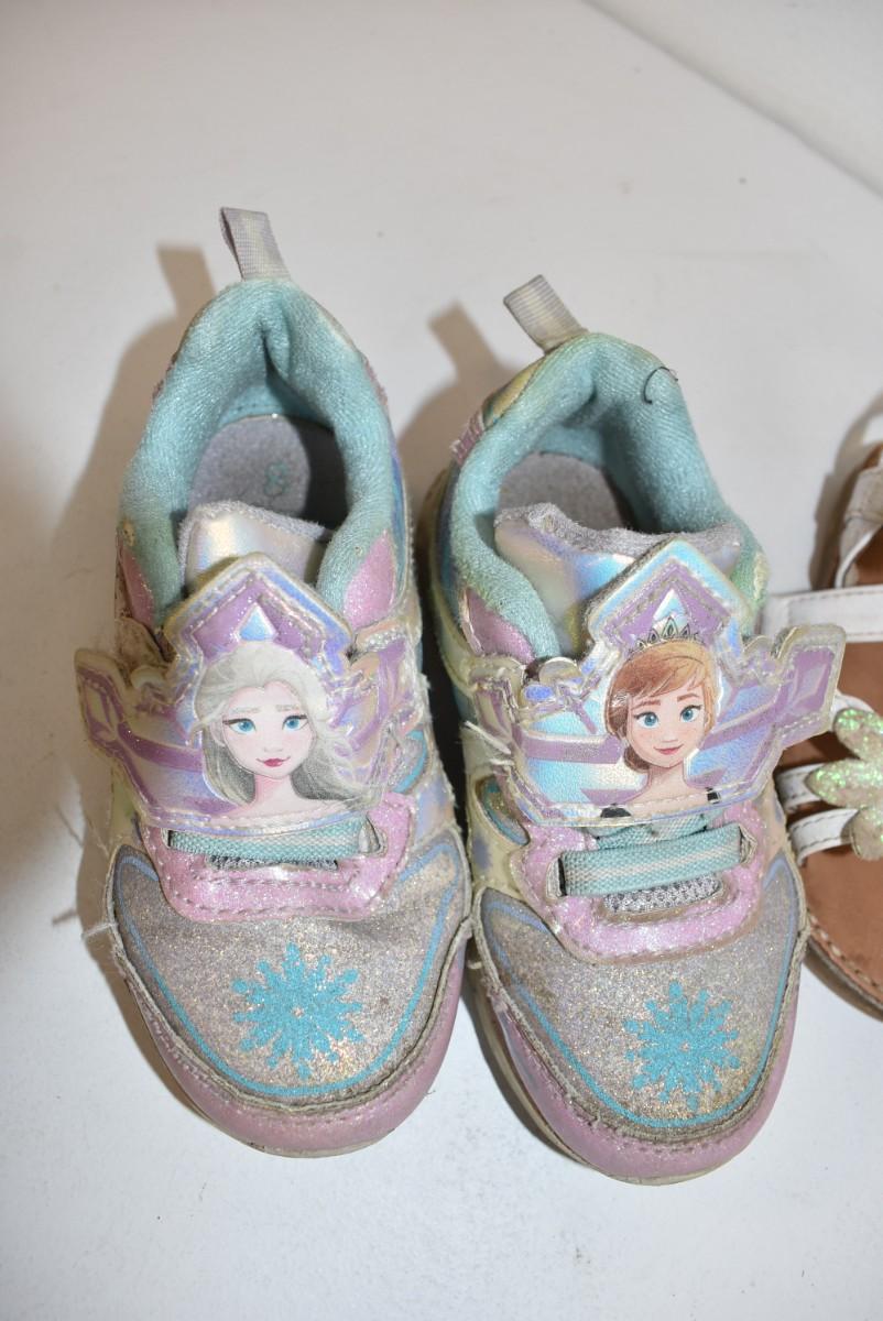 6 pairs Kids Shoes. Sizes left to right: 8, 8, 10, 6, 9, & 11