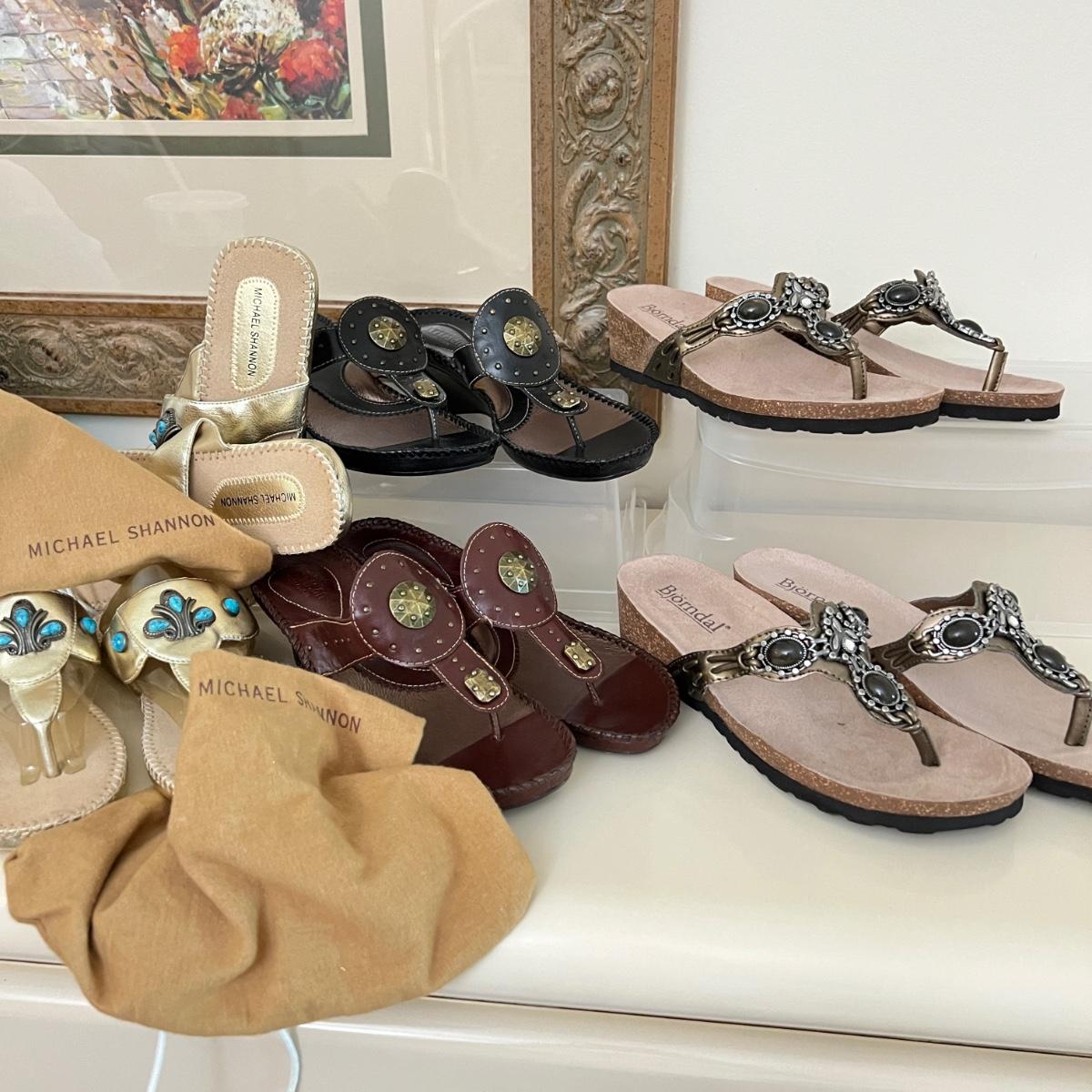 6 Pairs New Women’s Sandals Lot - Clark’s, Bjorn, Michael Shannon