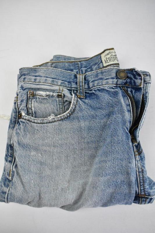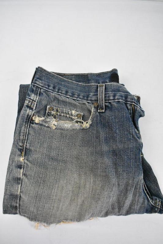 6 Pairs of Jeans & Shorts: Lucky Size 31 (Trashed) Arizona Size 32 x 32 (Stained) Dickies Plaid Shorts Size 32, Faded Glory Size 30 x 32, Anchor Blue 32 x 34 (Trashed), Aero Size 32 x 34