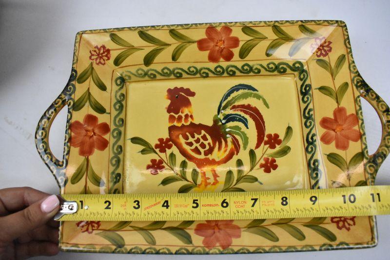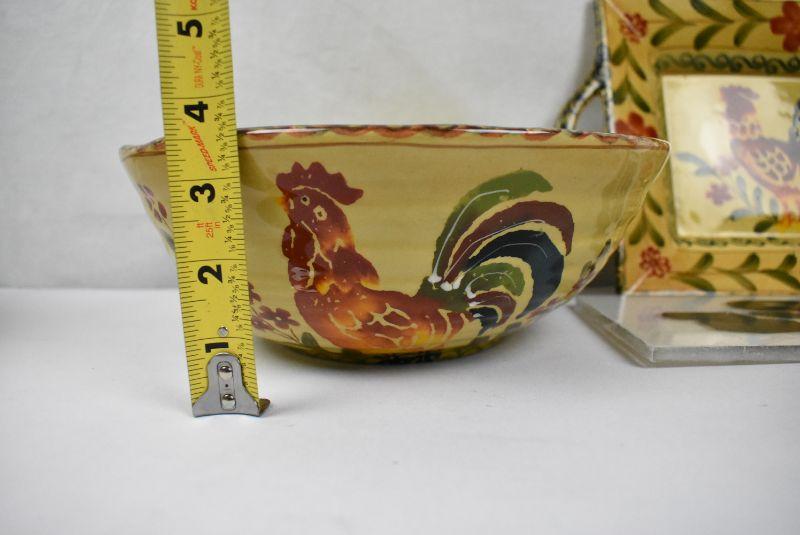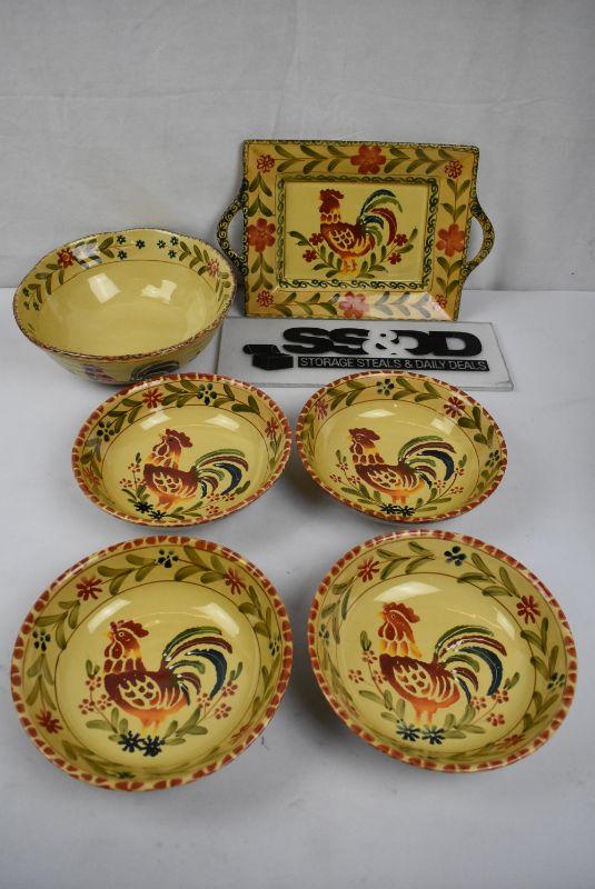 6 pc Chanticleer Rooster set: Serving Bowl, Small Tray, 4 Bowls