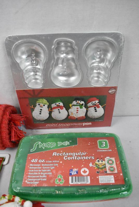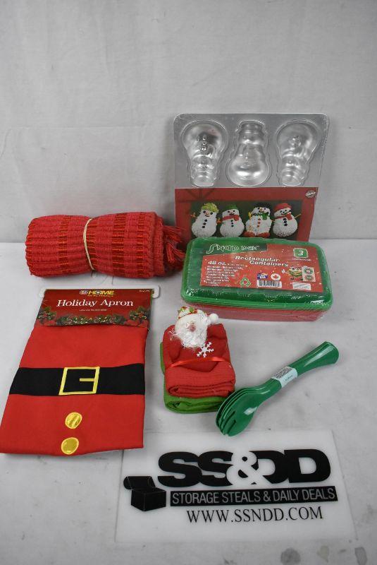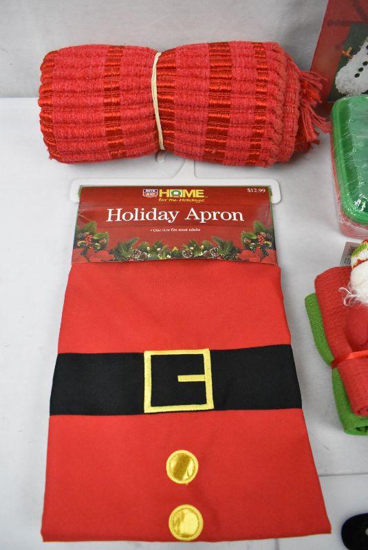 6 pc Christmas Kitchen: Rug, Apron, Cake Pan, etc - New