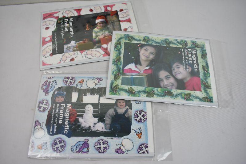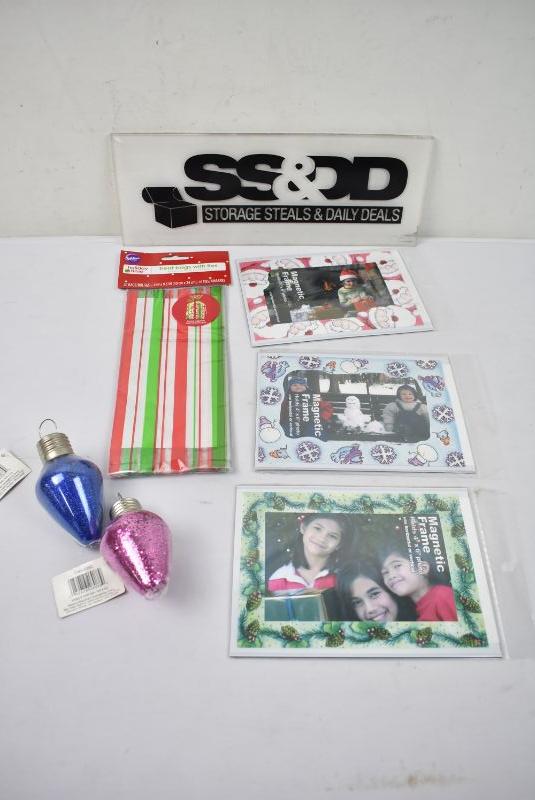 6 Piece Various Christmas: Treat Bags, 3 Magnetic Frames, 2 Glitter Bulb Ornaments - New