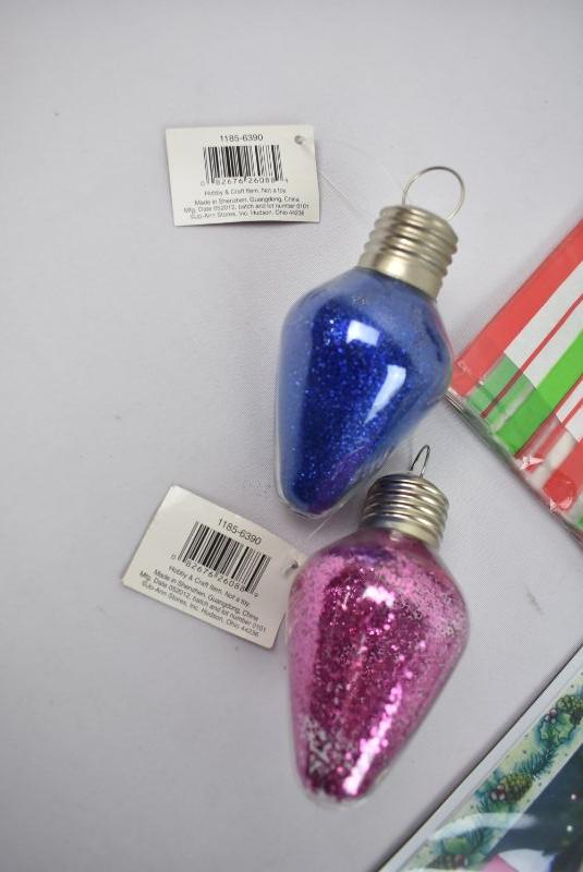 6 Pc Christmas: Treat Bags, Magnetic Frames, Glitter Bulb Ornaments - New