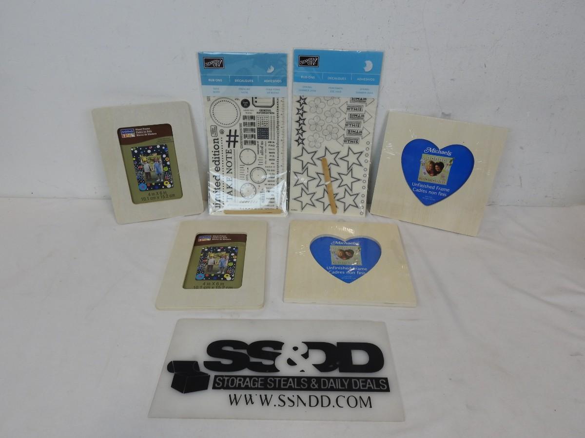 6 pc Crafting Lot: 4 Wooden Frames & 2 Sets of Rub-On decals by Stampin' Up! - New