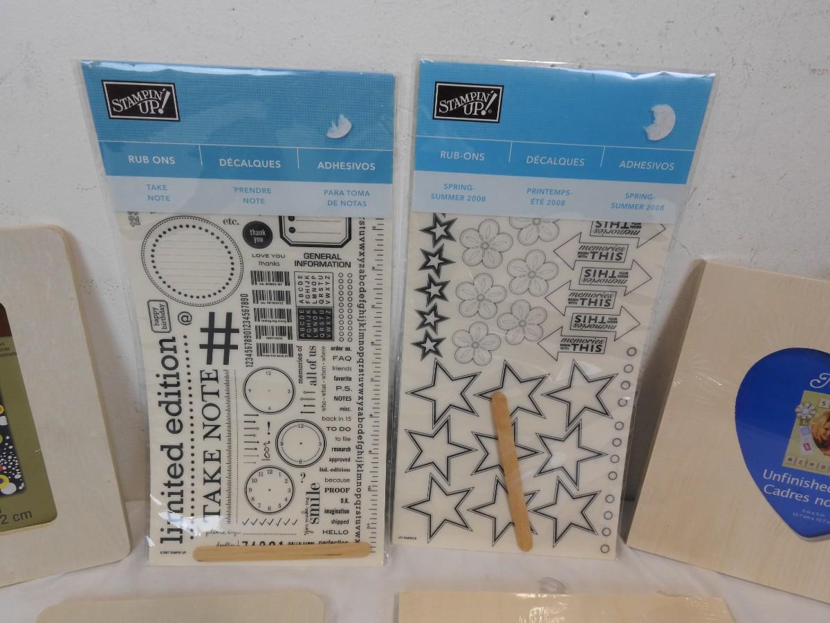 6 pc Crafting Lot: 4 Wooden Frames & 2 Sets of Rub-On decals Stampin' Up! - New