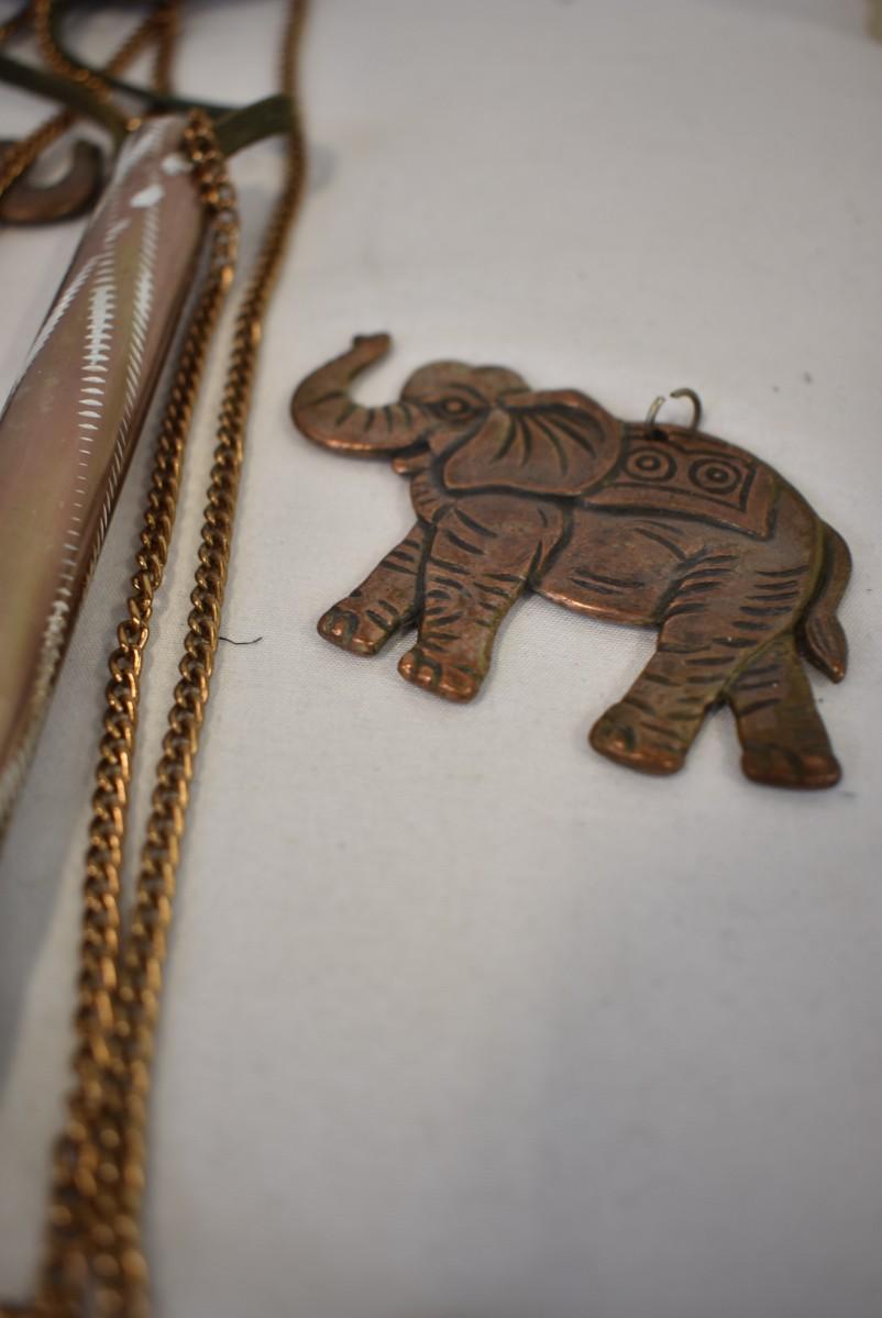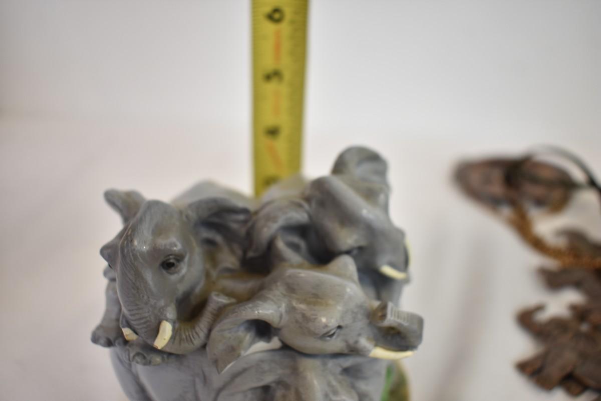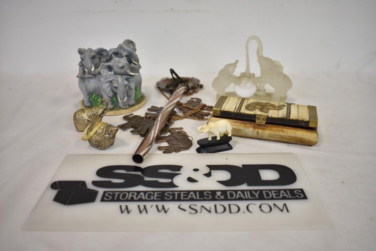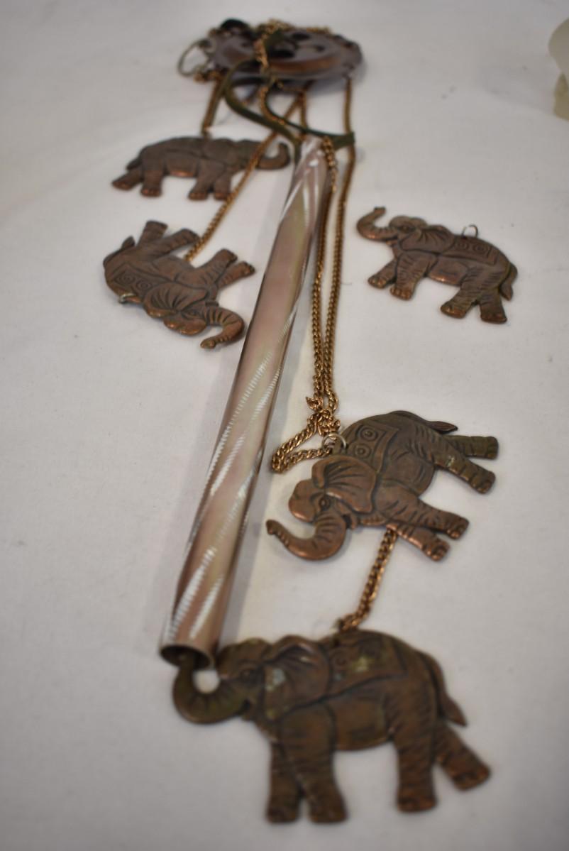 6 pc Elephant Lot: Wind Chime, 1 Elephant Detached, Trinket Box, Figurines
