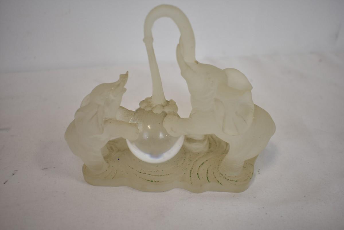 6 pc Elephant Lot: Wind Chime, 1 Elephant Detached, Trinket Box, Figurines, Glass Figurine Has Tip Of Tusk Broken