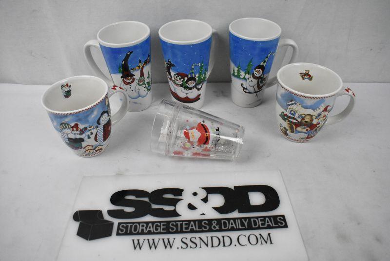 6 pc Holiday Kitchen: 5 mugs & 1 plastic Glass
