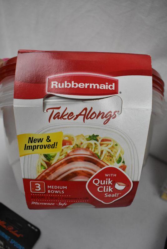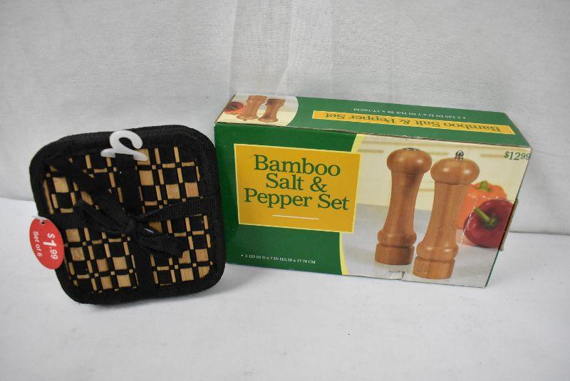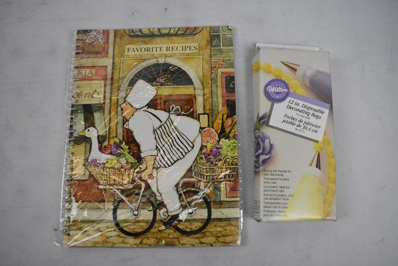 6 pc Kitchen: Rubbermaid 3 bowls/3 lids, 6 pc Measuring Spoons, Recipe Notebook, 6 pc Coasters, Bamboo S&P Set, 12" Disposable Decorating Bags - New