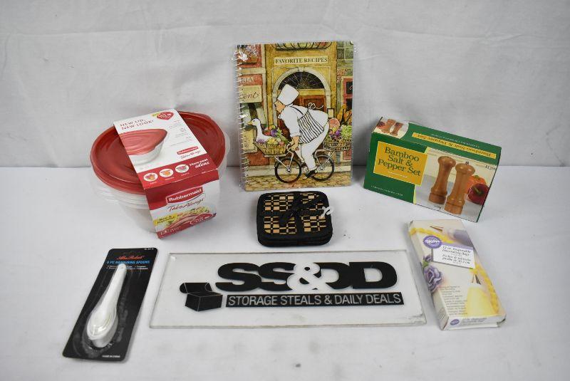 6 pc Kitchen: Rubbermaid, Measuring Spoons, Recipe Notebook, & More - New