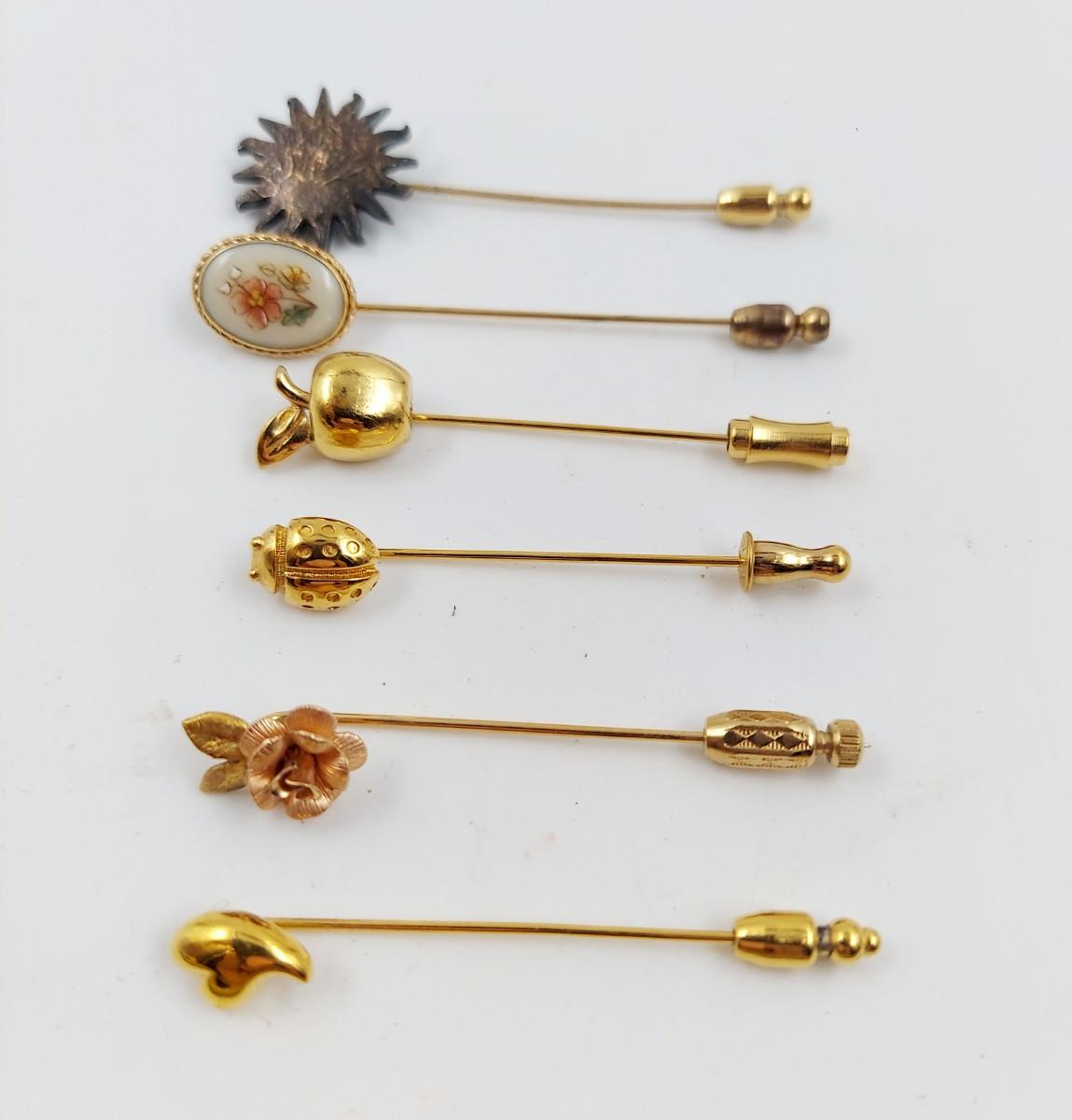 6 PC LAPEL STICK PINS - INCLUDING 14K FILLED LENOX