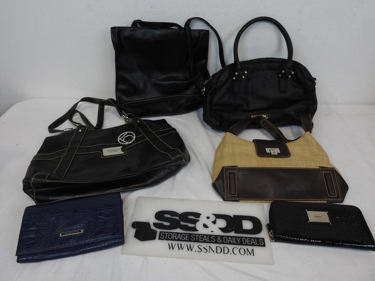 6 pc Liz Claiborne: 3 Black Purses, Black Wallet, Blue Wallet, Brown Purse