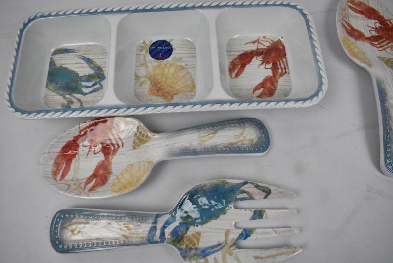 6 pc Melamine Serving Set, Lobsters & Crab by Cynthia Rowley: 2 Trays. 2 sets of serving utensils