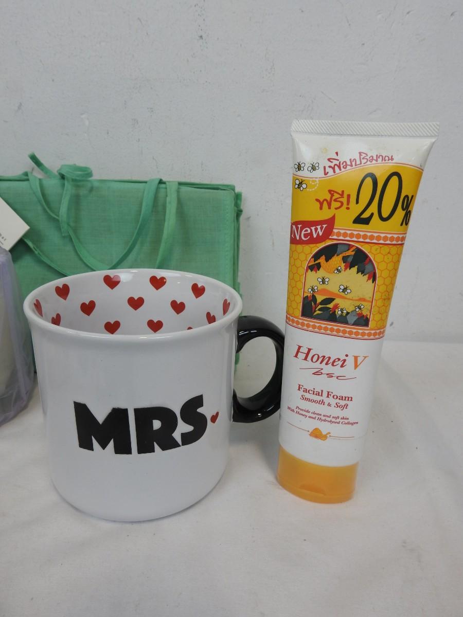 6 pc Personal Care: Beach Mat, Mug, Face Scrub, Faux Plants, Candle - New