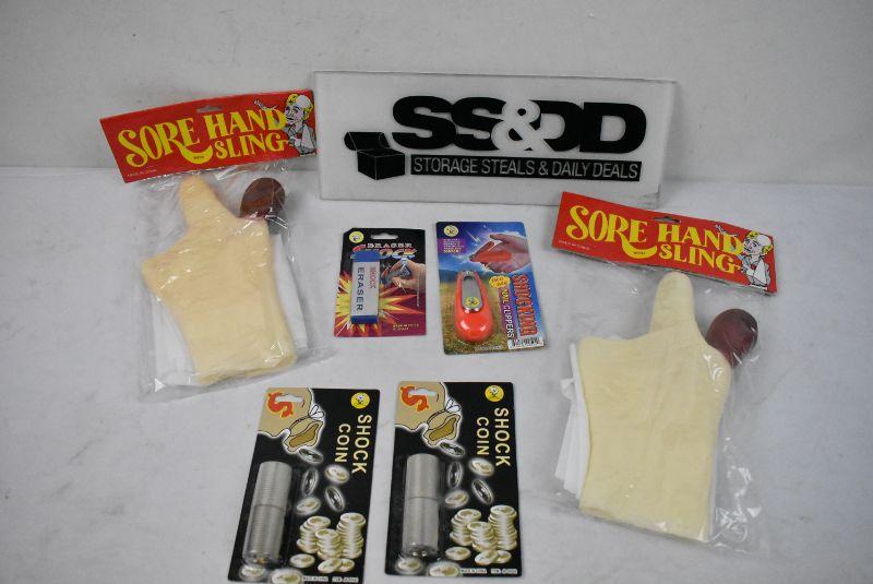 6 pc Practical Joke Lot: 2 "Sore Hand with Sling" & 4 Shocking Toys - New