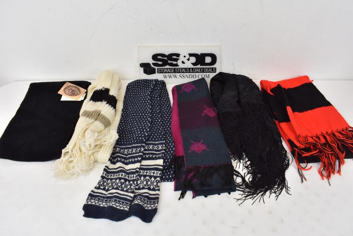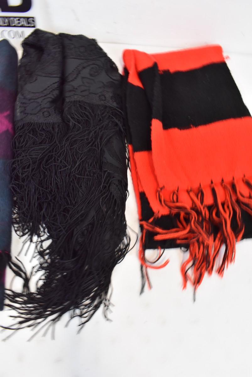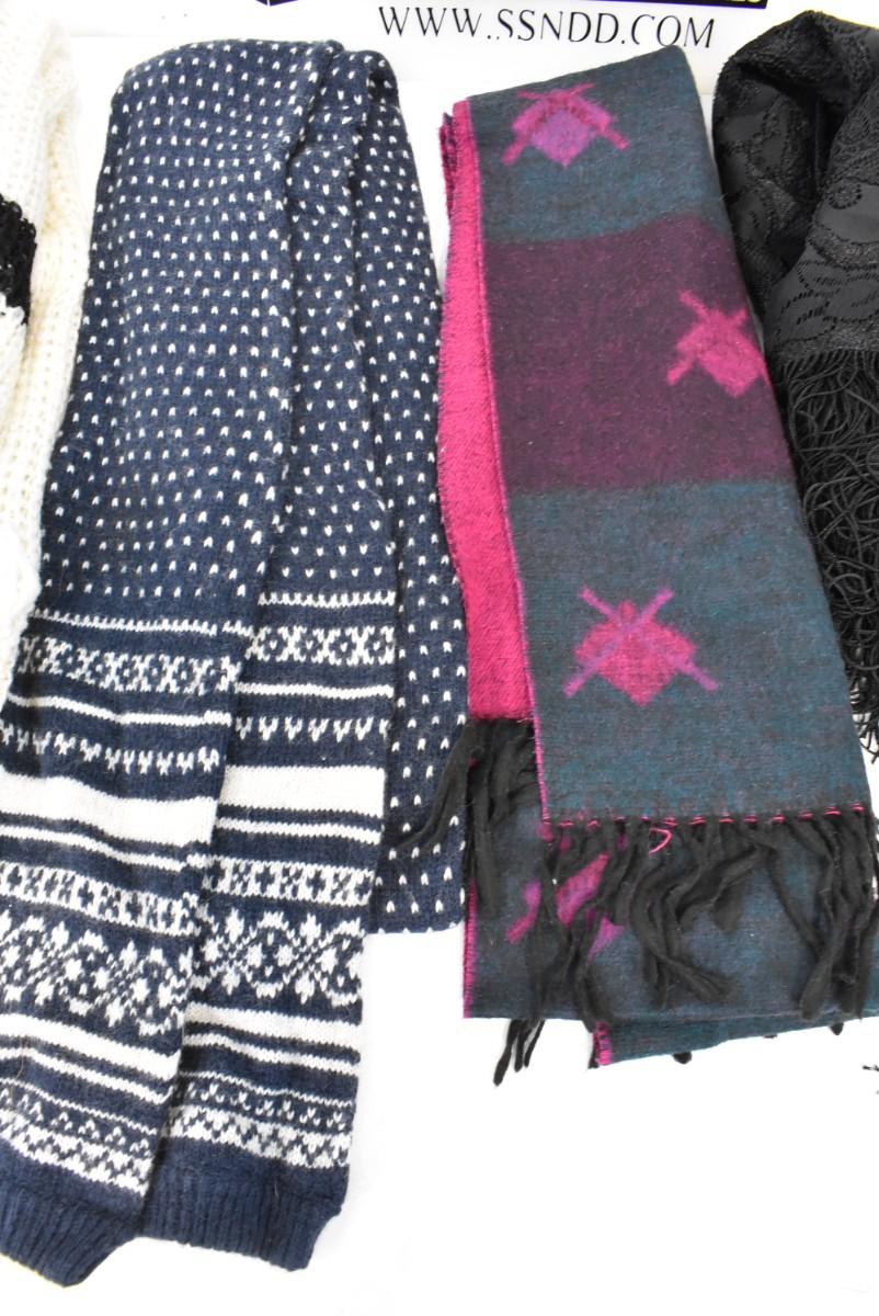 6 pc Scarves: 1 Black Lace w/ Fringe & 5 for Cold Weather