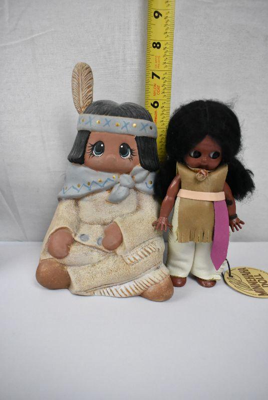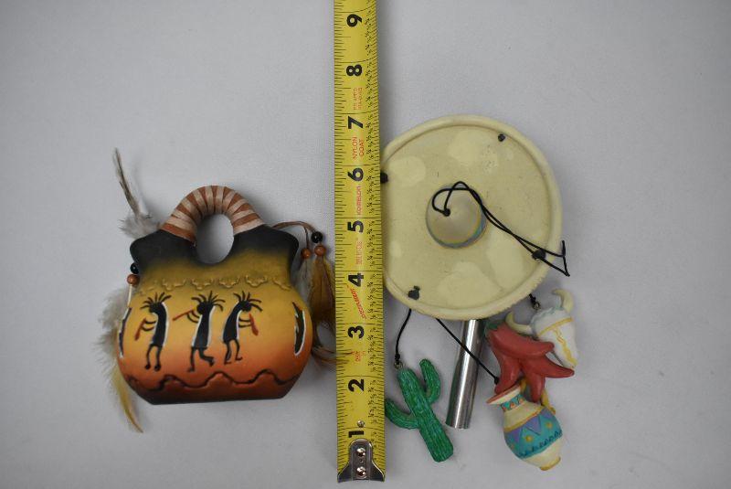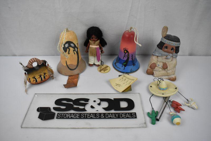 6 pc South West & Native American Decor: 2 Windbells, 1 Wind Chime, 2 figurines, 1 doll