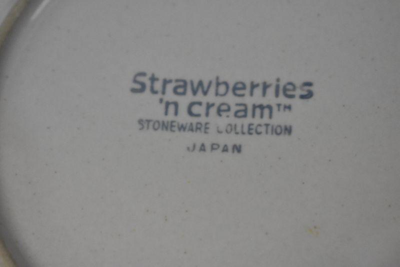 6 pc Strawberries: 5 Dessert Plates Strawberries N Cream Stoneware Collection, 1 Clear candy dish Cut glass/crystal