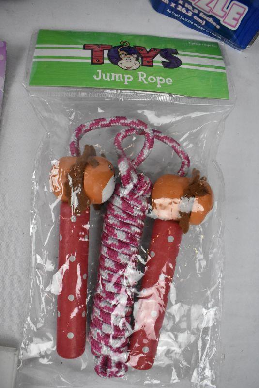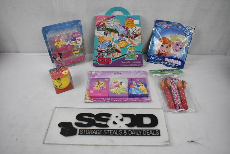 6 pc Toys: Stress Ball, Daisy Toys, Binder Decorations, Frozen Puzzle, Princess Crayons, Jump Rope - New